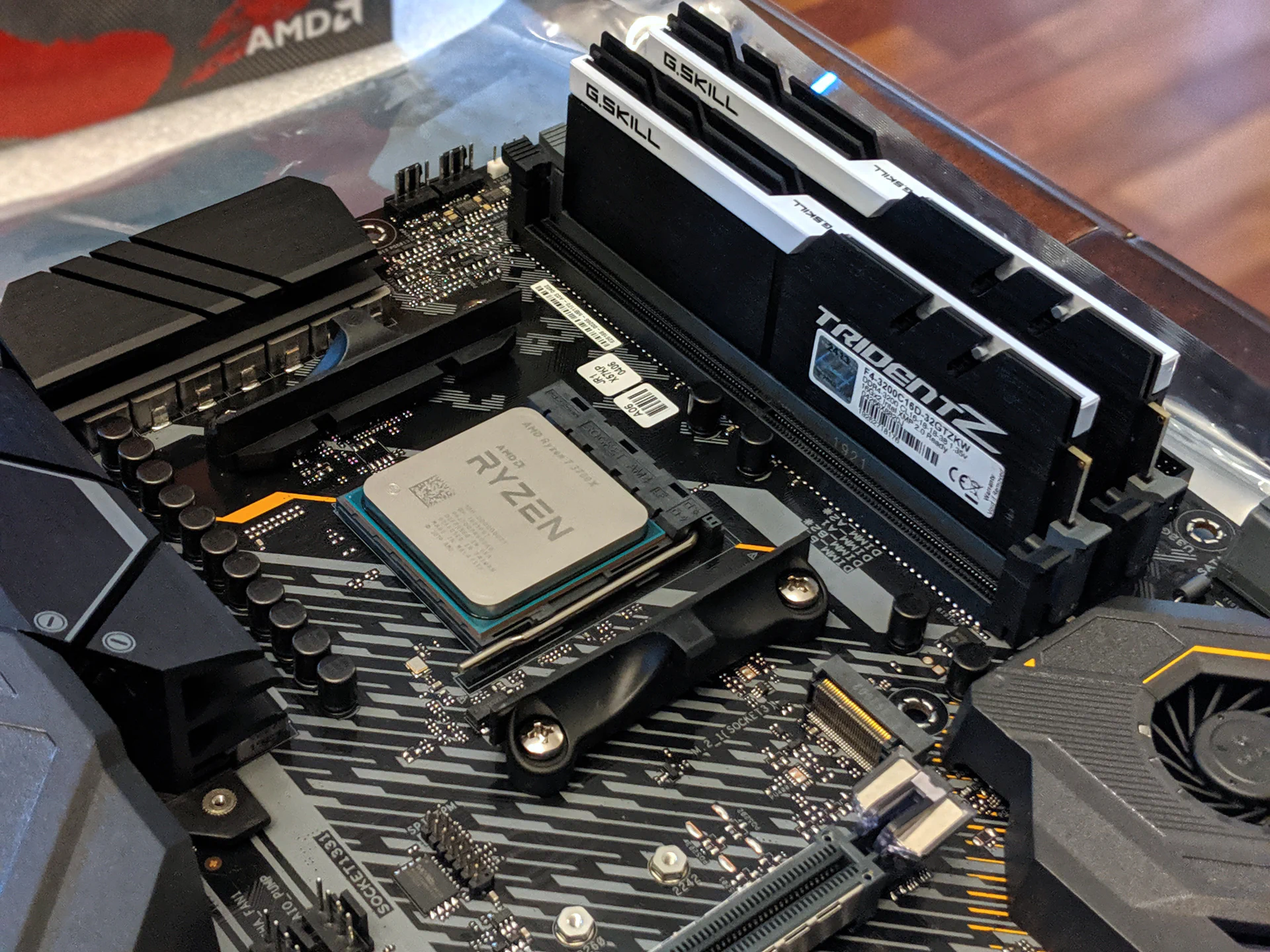 After a good bit of research, I finally decided to go with AMD’s 3700X CPU, an ASUS AM4 TUF Gaming X570-Plus (Wi-Fi) Motherboard, and 32GB of G.SKILL TridentZ 3200MHz RAM. The 3700X (vs. a 3600/3600X) and 32GB vs 16GB of RAM might have been a bit overkill for most of what I do, but I was able to catch the RAM on sale so I figured I’d splurge a little bit (yes, that’s how they get ya).