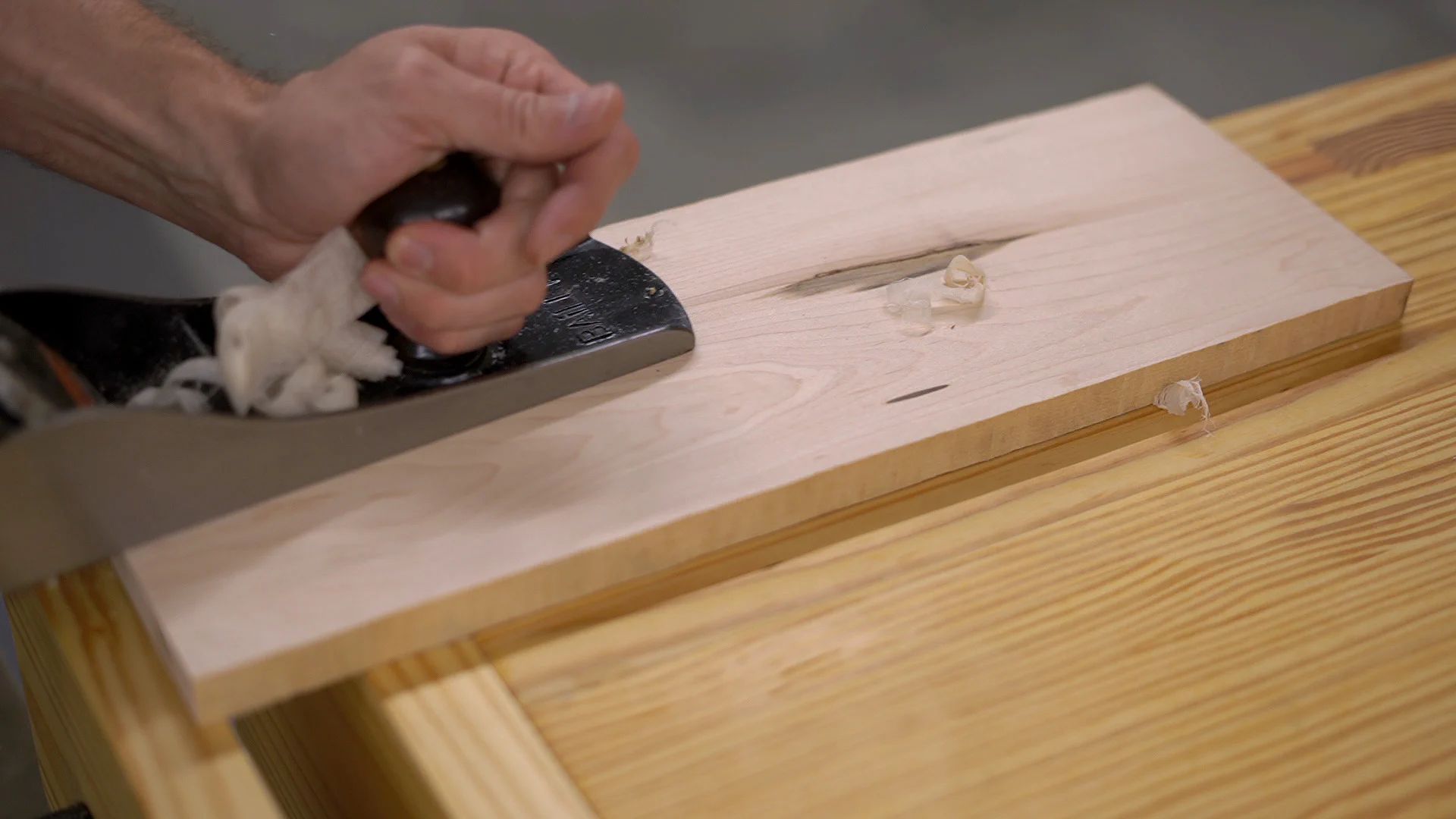 And to get a little practice and some exercise, I also decided to hand plane a couple of the boards and the walnut was definitely more fun to plane than the hard maple! A sharp iron and a little paraffin wax on the plane’s sole help considerably.