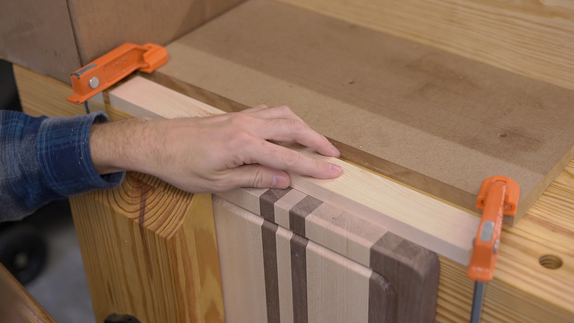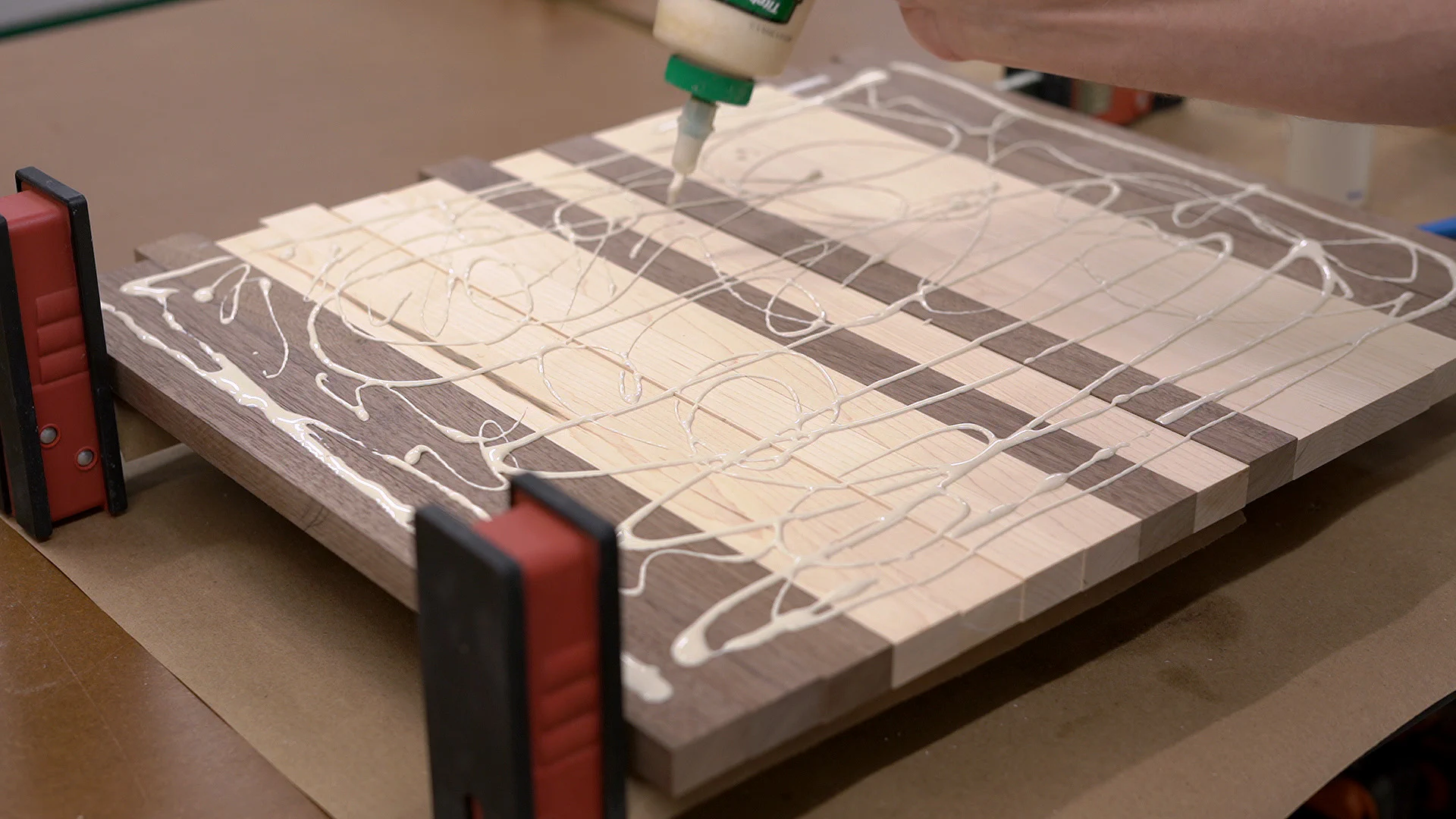I then made a light mark across the top edges to avoid flipping a piece the wrong way, and after flipping them over, it was time for some glue. For this, I used Titebond III as it’s waterproof and has a longer open time. It’s approved for indirect food contact, and it’s their recommendation for cutting boards.