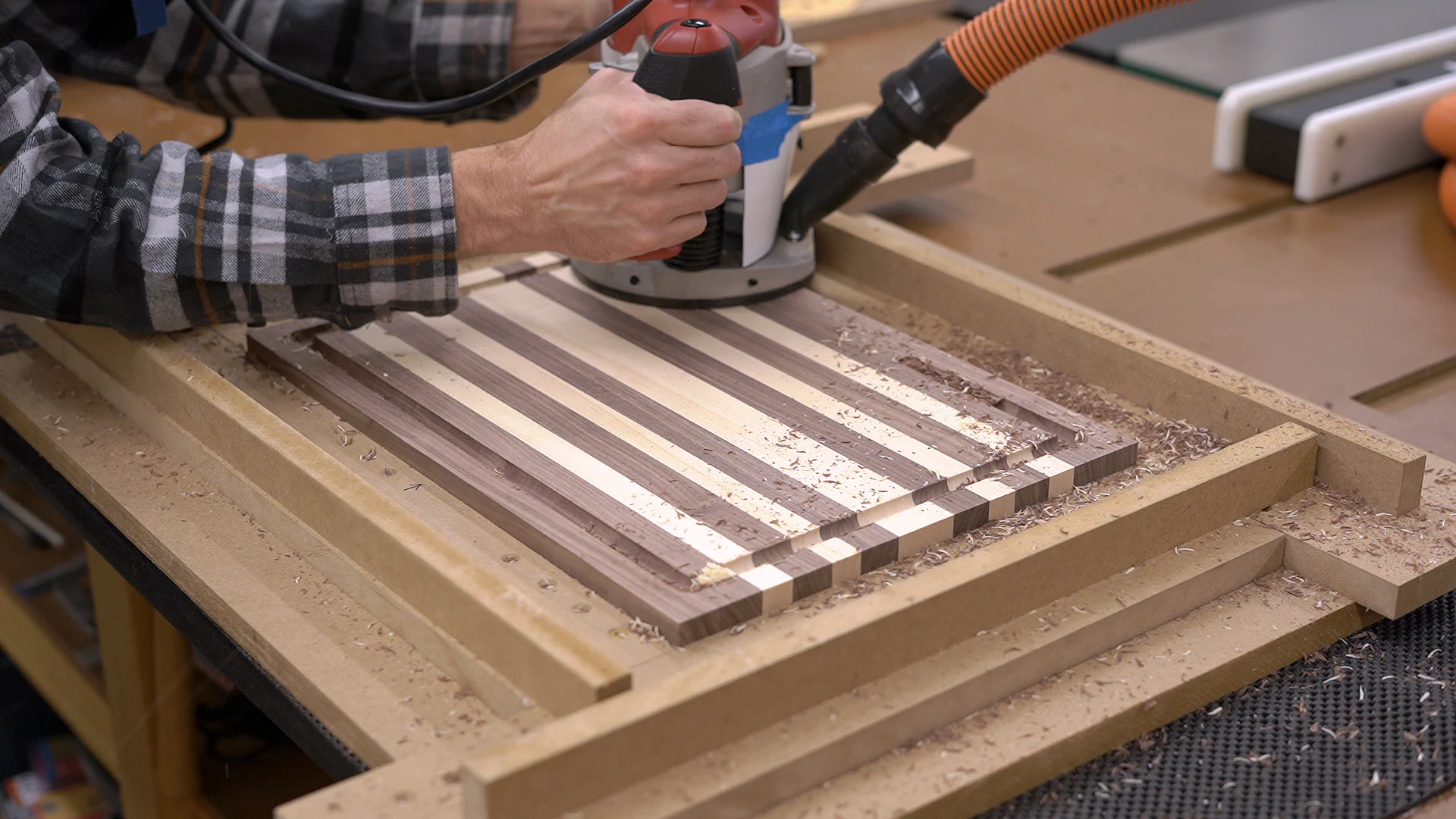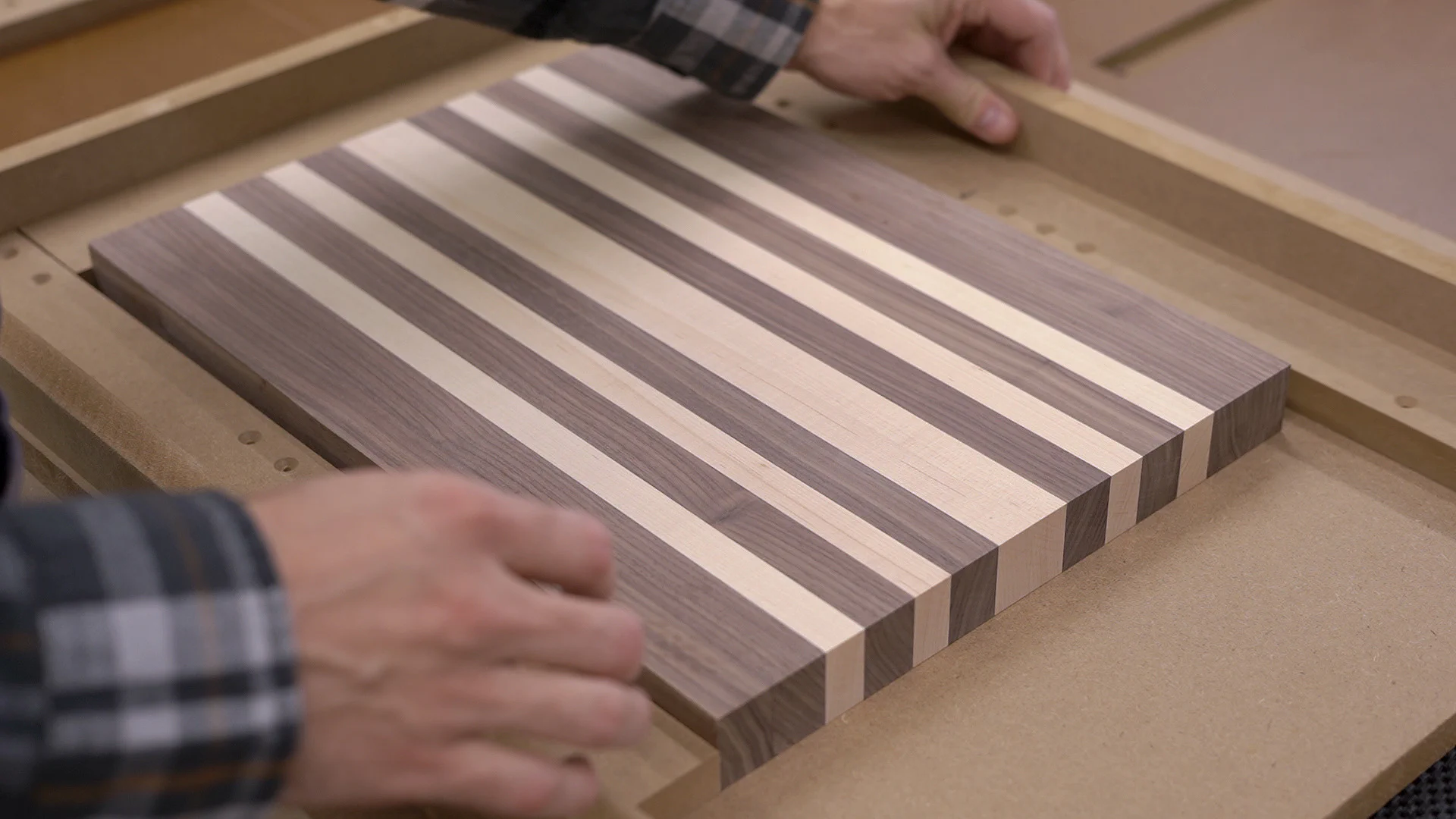 I’ve been wanting to make these edge-grain cutting boards for birthday and holiday gifts for quite a while now. The basic board is relatively straight forward to make, but in this article, I’ll also go over two ways to the route juice grooves and an easy setup for routing handles.