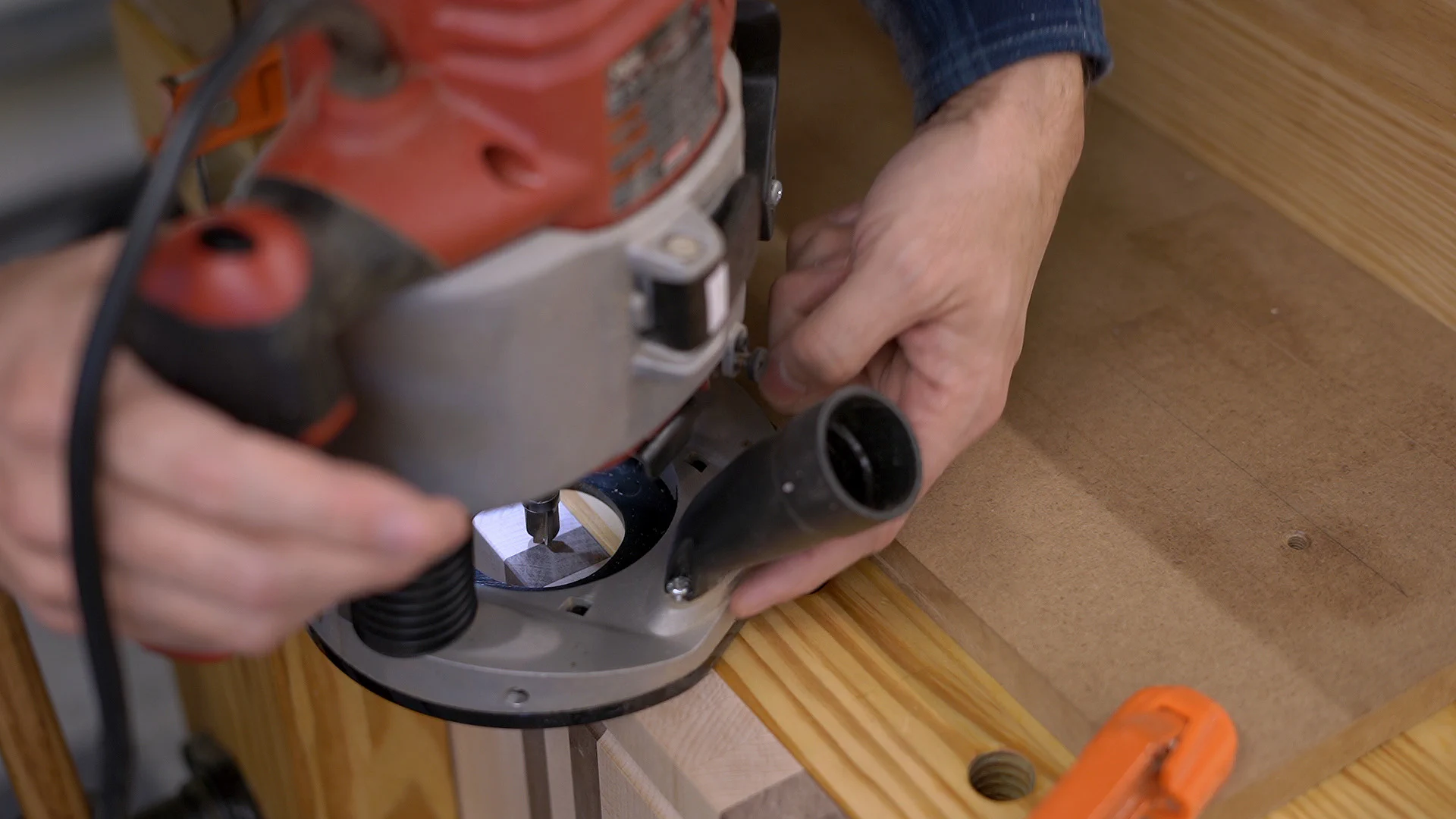 To route the groove, I started by carefully making the initial plunge, and then I immediately locked the height of the router. Then I just made sure to hold the router flat and against the template while routing in a counter-clockwise direction.