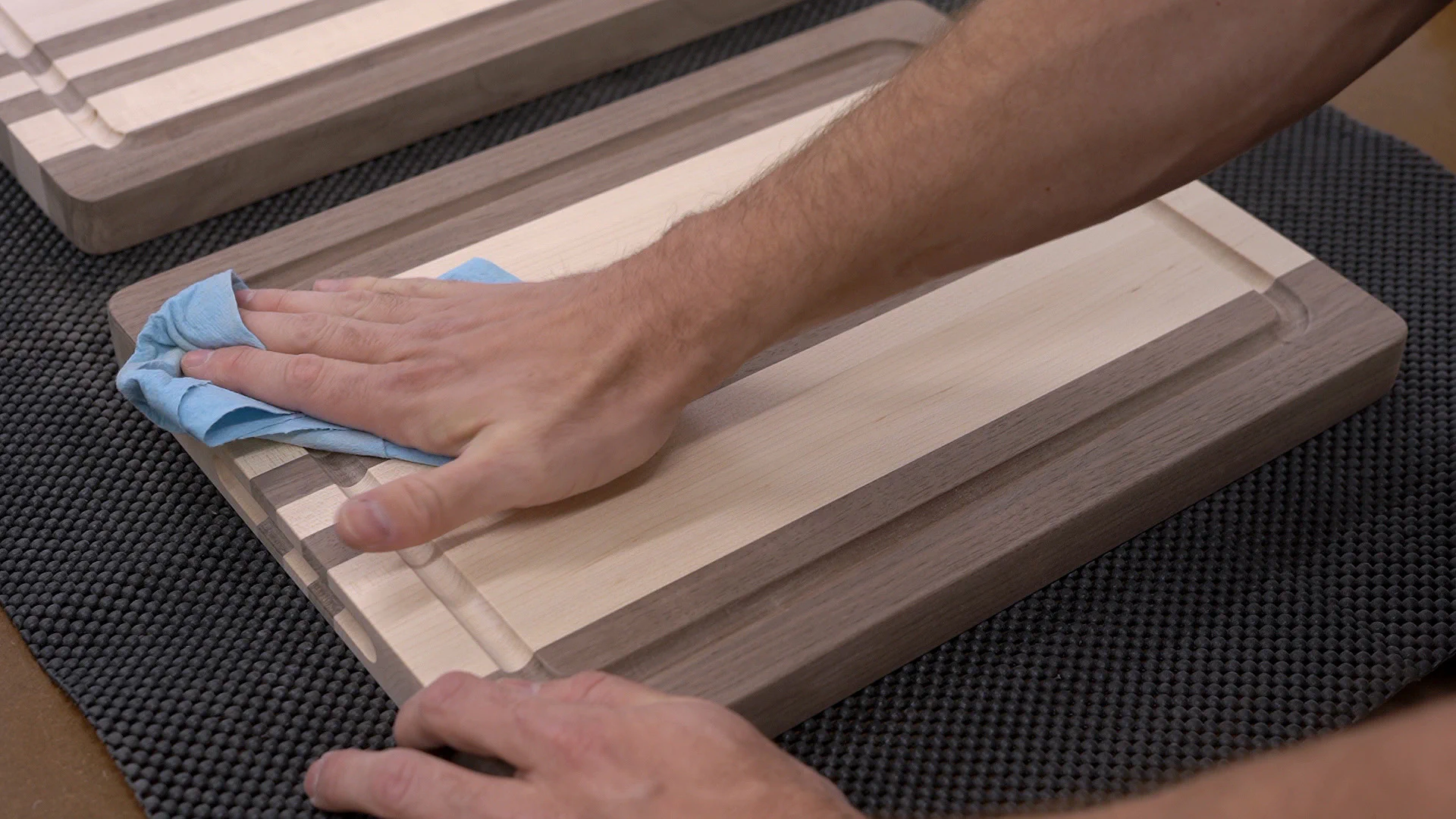 Once it dried, I came back with 400 grit paper and very lightly sanded with the grain until it was smooth to the touch to prevent the board from feeling fuzzy the first time it is cleaned.