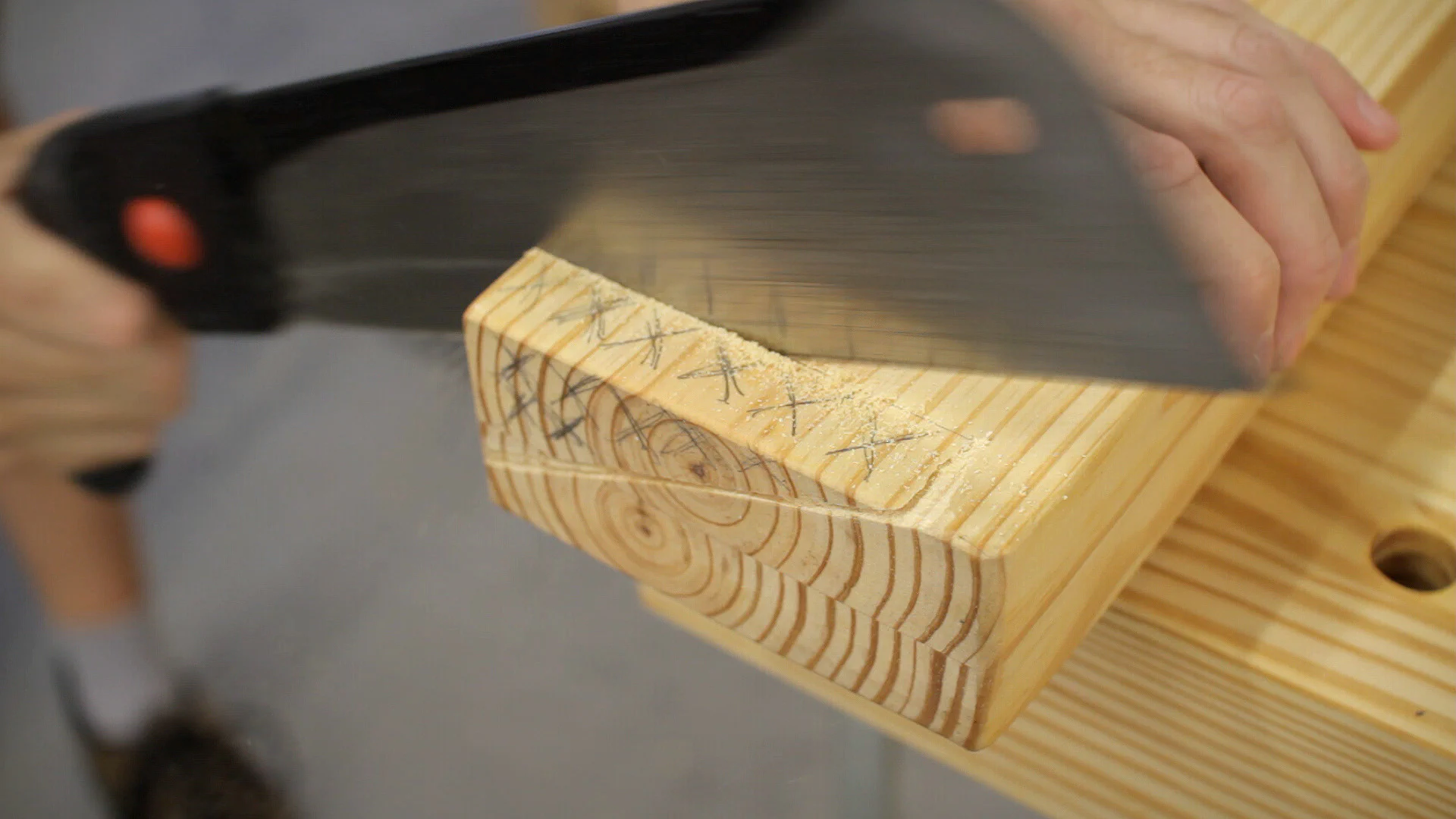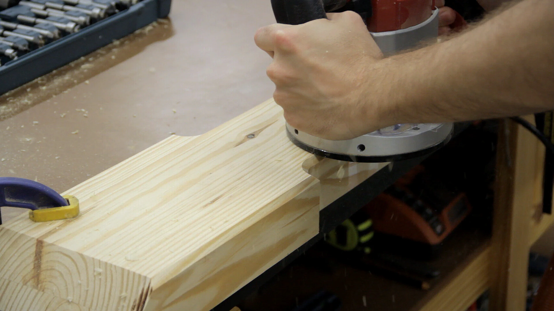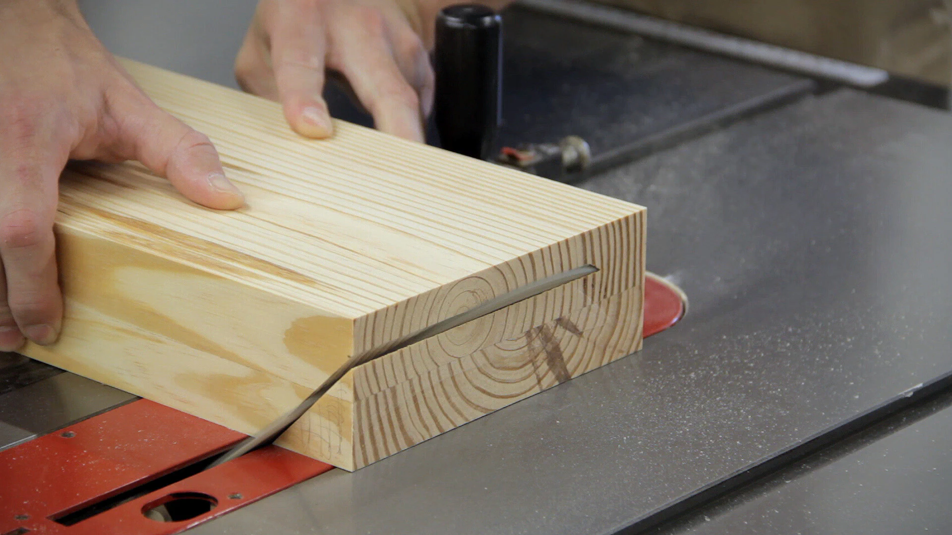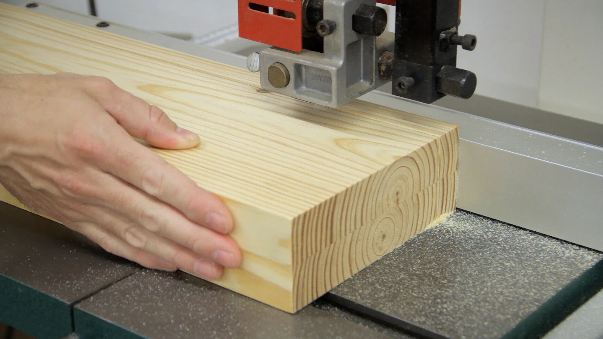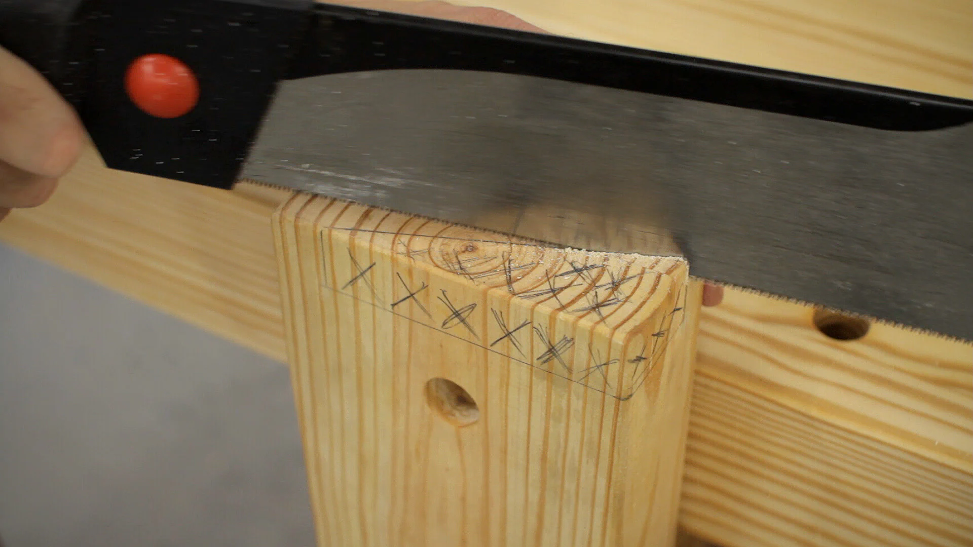 To do that, I used a large Forstner bit to cut out a curve about a foot from the top on each side. I then scribed a line along the edge starting at the inside of the curve and cut the pieces off at my band saw.