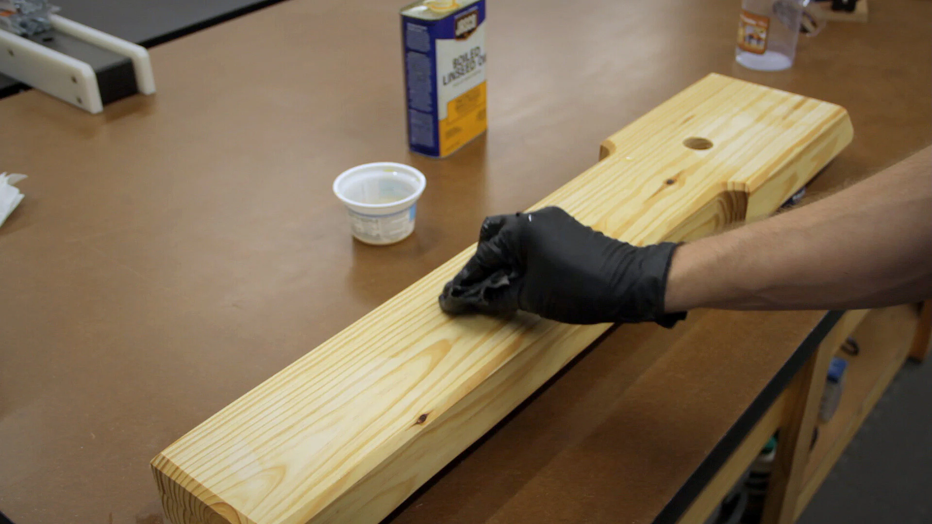 After a quick test, I decided the hardware definitely needed a new paint job, so I masked off the screw with a bit of string and a piece of dowel for the collar and spray painted it a flat black.