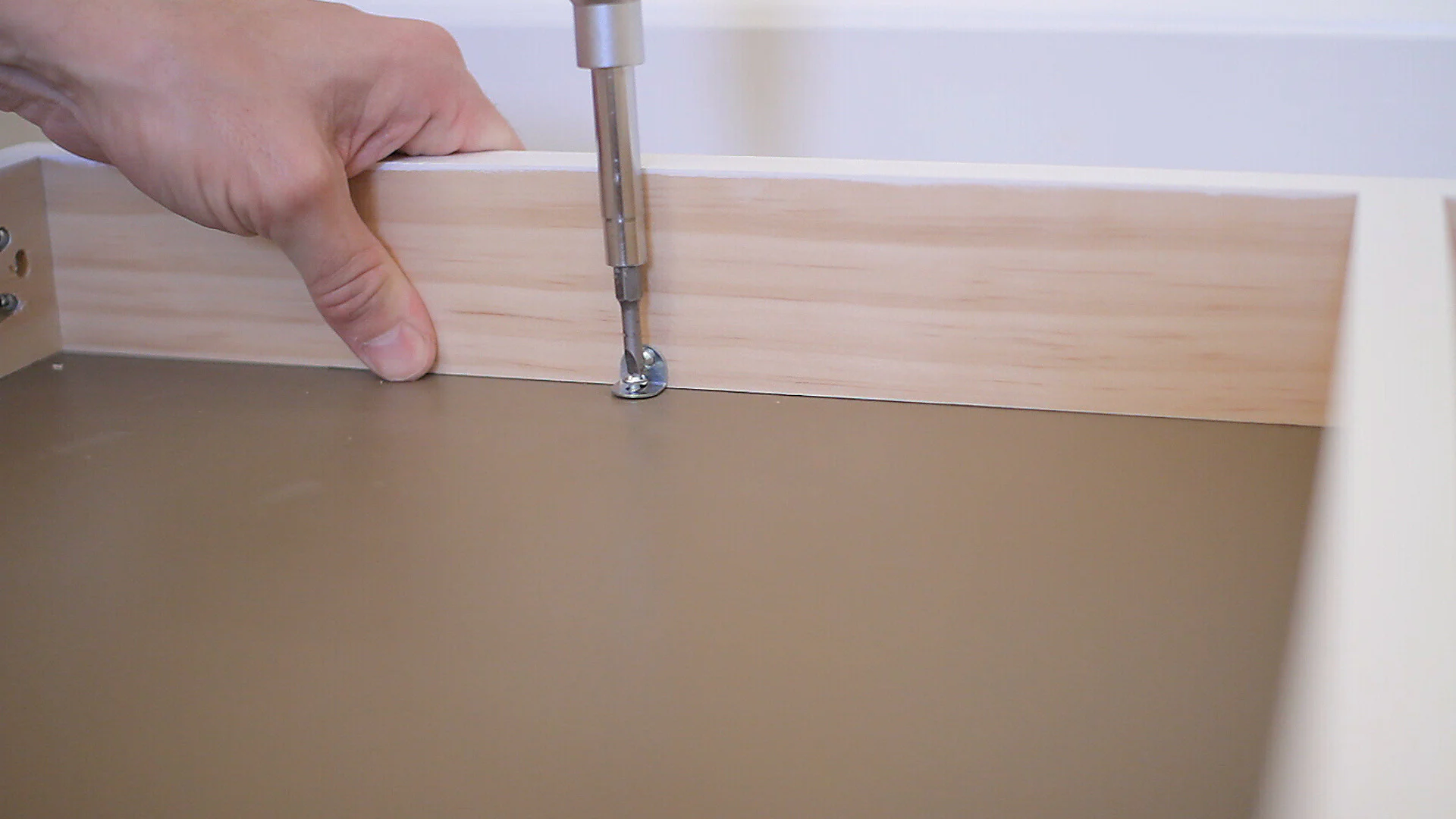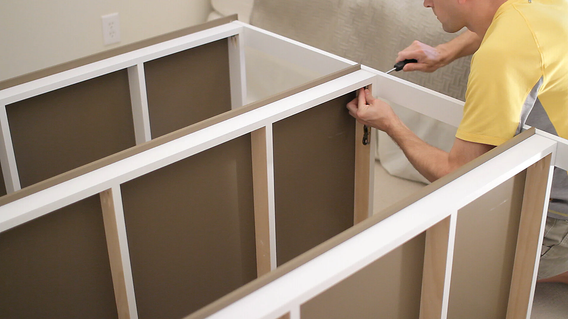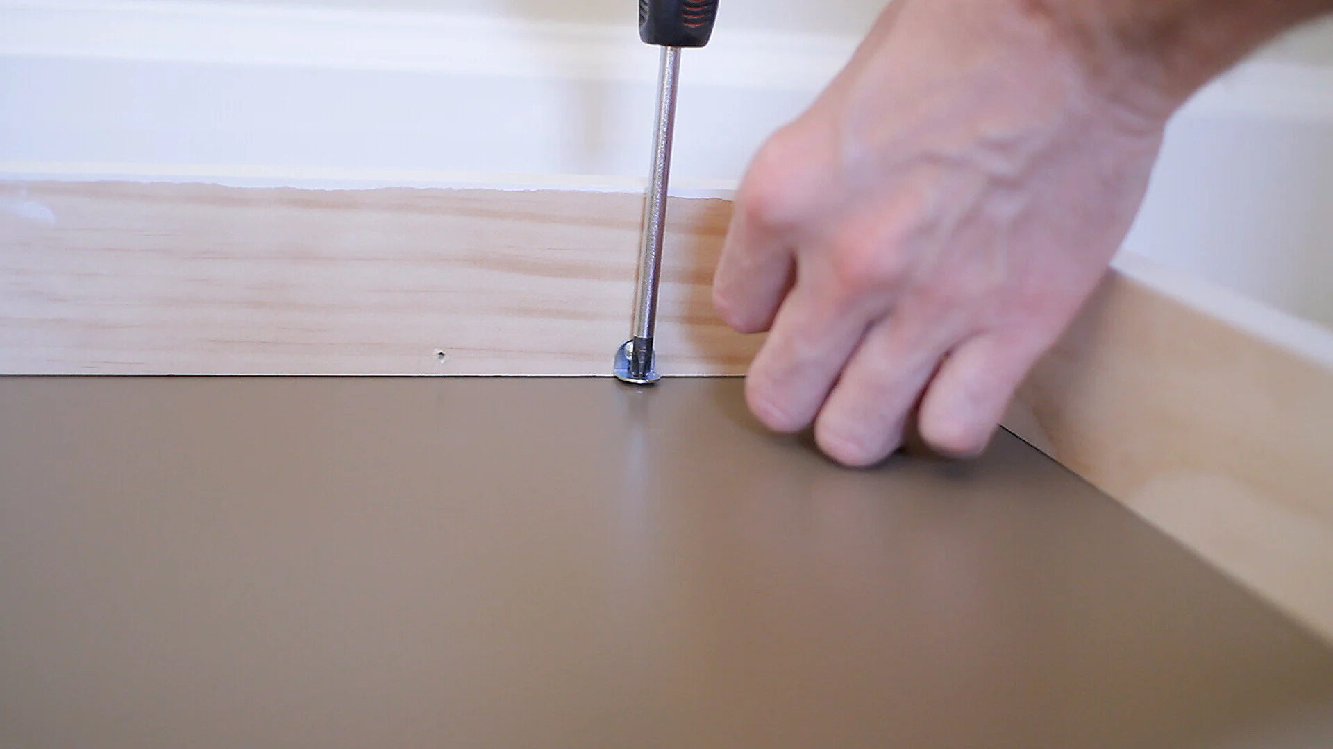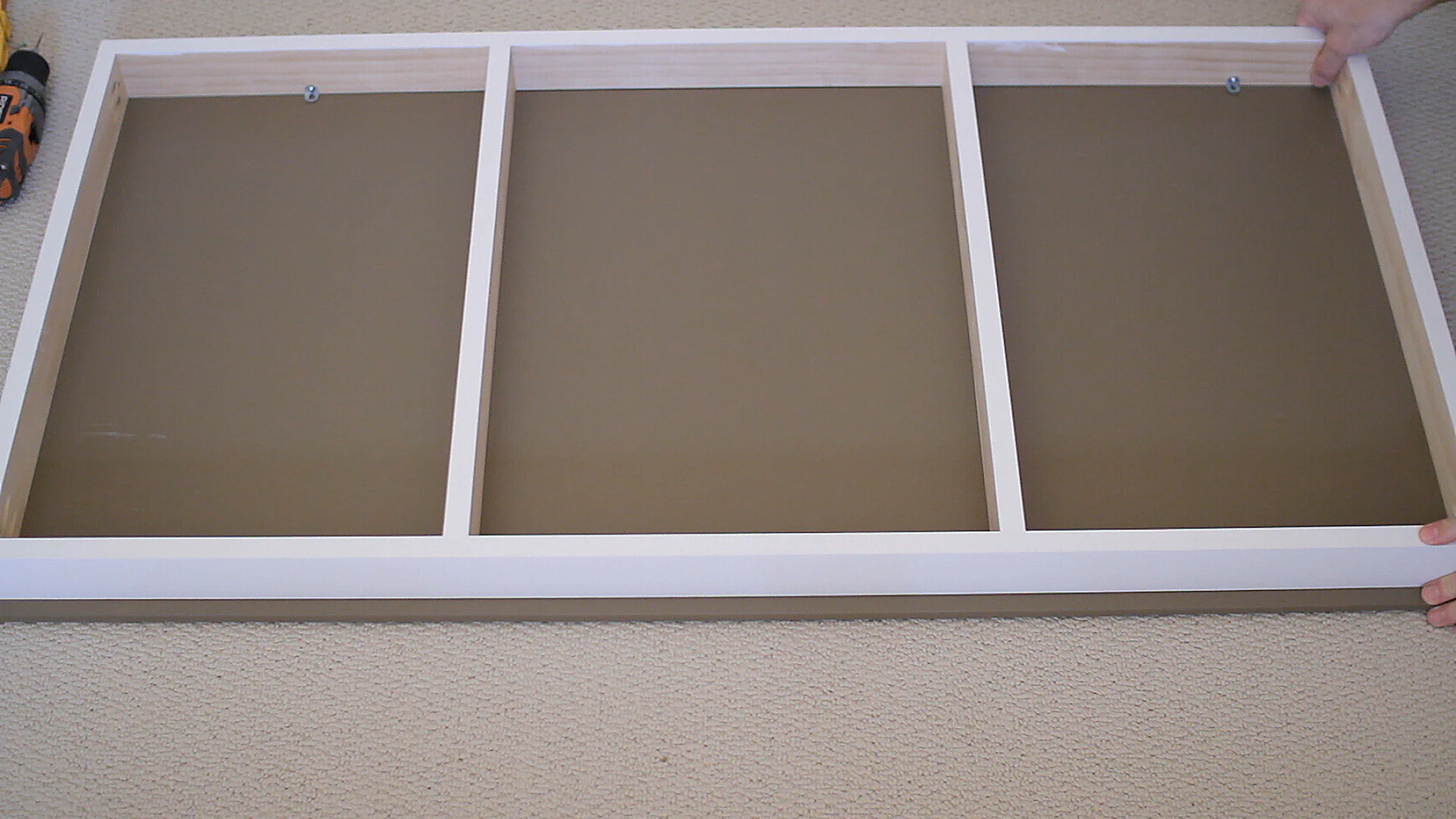 To attach the tops I laid them face down and then aligned the frame so that the rear and side edges were flush. Then I made a small mark for the screw locations using a Philips head screwdriver and moved the frames back out of the way.
