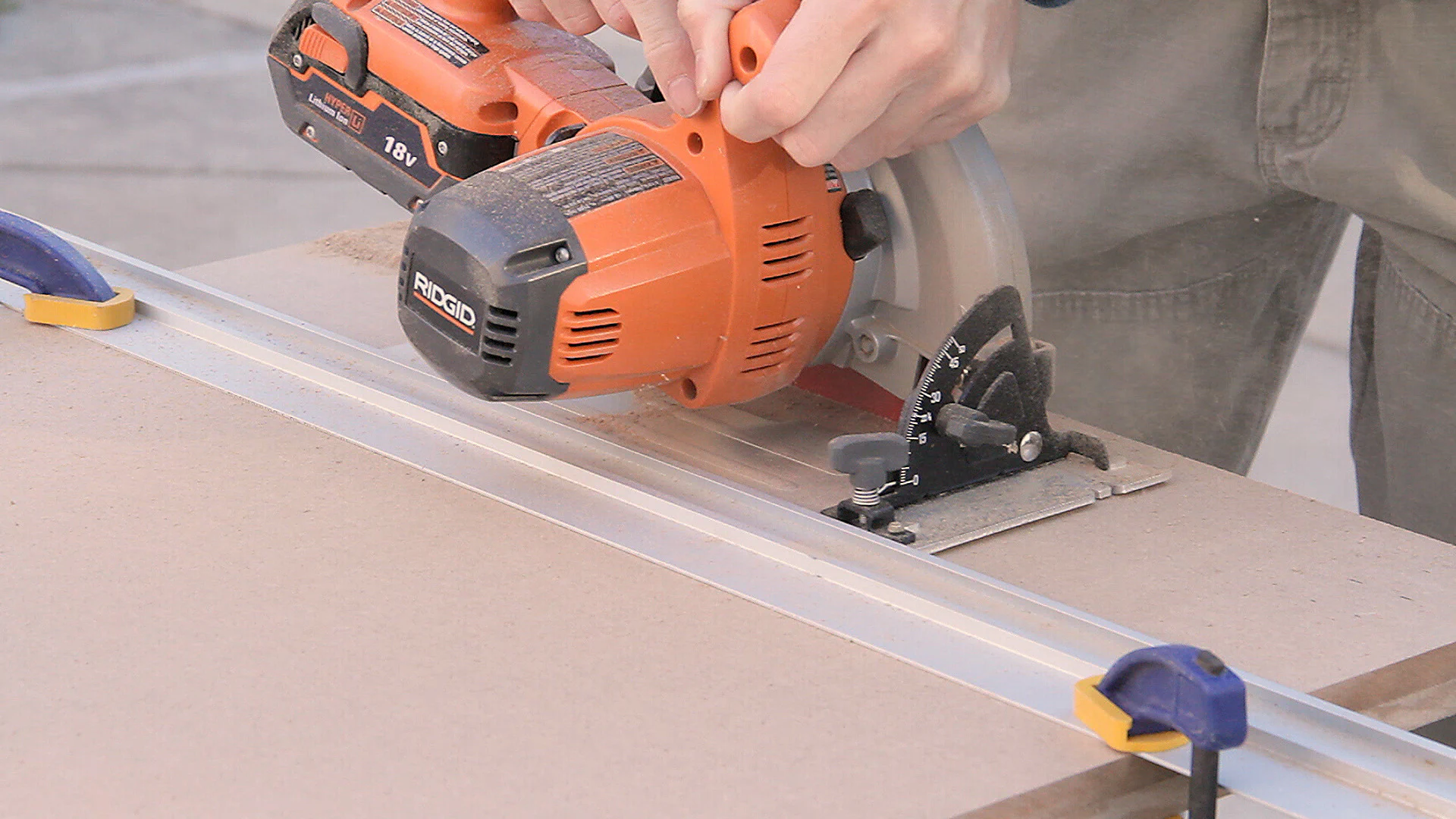 I started by cutting the shelves and top from a 1/2" sheet of MDF. (Note that most local Home Depots will cut the sheet at least once to make it easier to manage.) In order to fit our four seed trays on a single shelf along with our 4’ lights, I made the shelves 24" deep by 47" wide. I left the top 49" wide (MDF sheets are actually 49" x 97") so that it would extend a little over the tops of the legs.