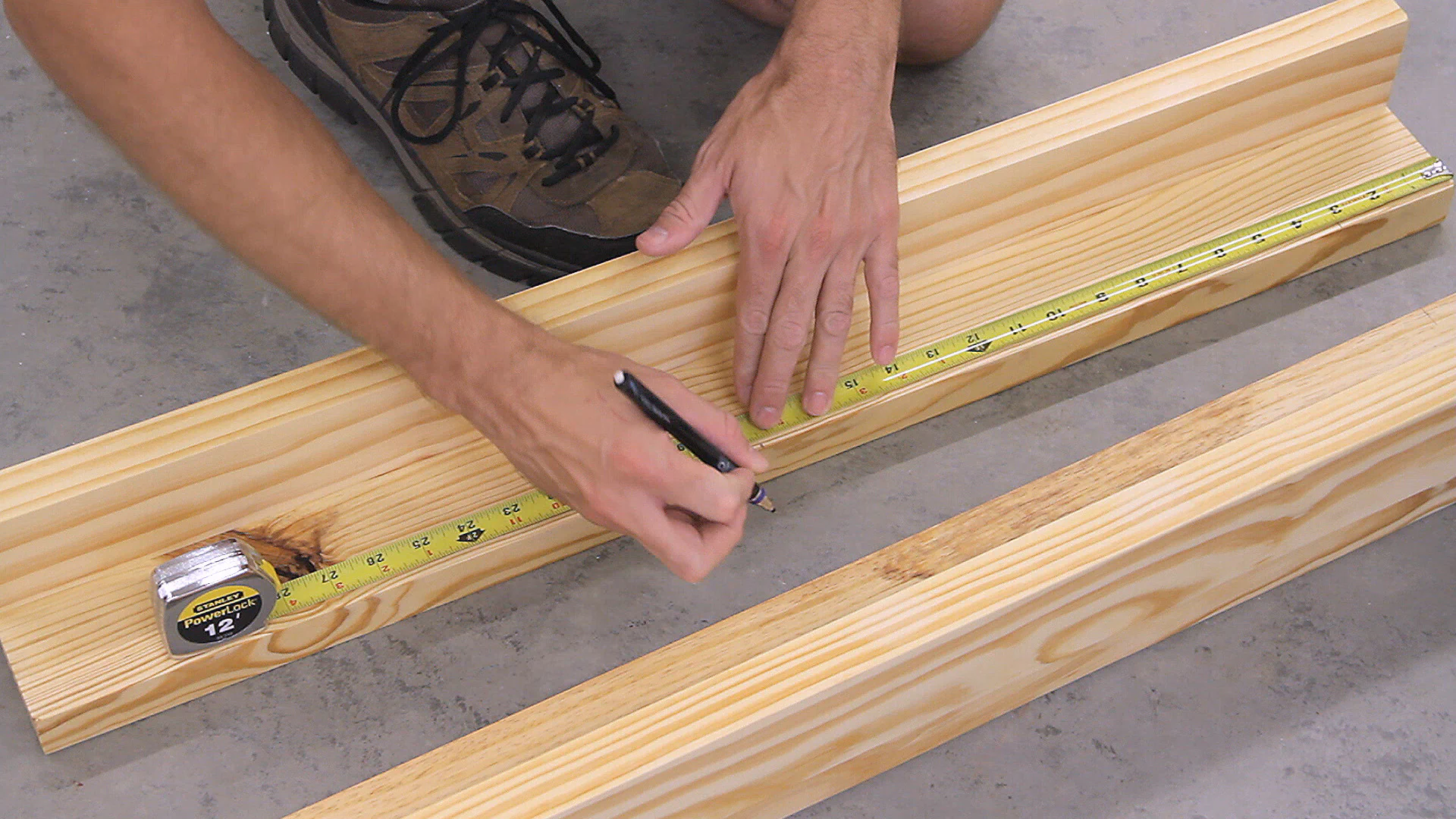 Now that the shelves were finished, it was time to finally assemble the table. I started by marking on one leg where the top and each shelf would attach. I then transferred those marks to all the other legs.