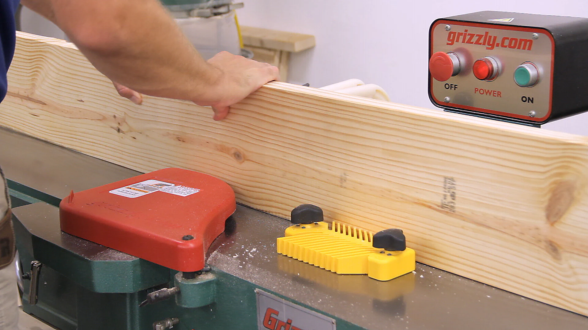 After cutting the boards to rough length, I headed over to the jointer and joined one face and edge on the 2"x8" boards. Since the 2"x10" board was wider than my jointer, I joined an edge on it and ripped it in half first at the table saw.