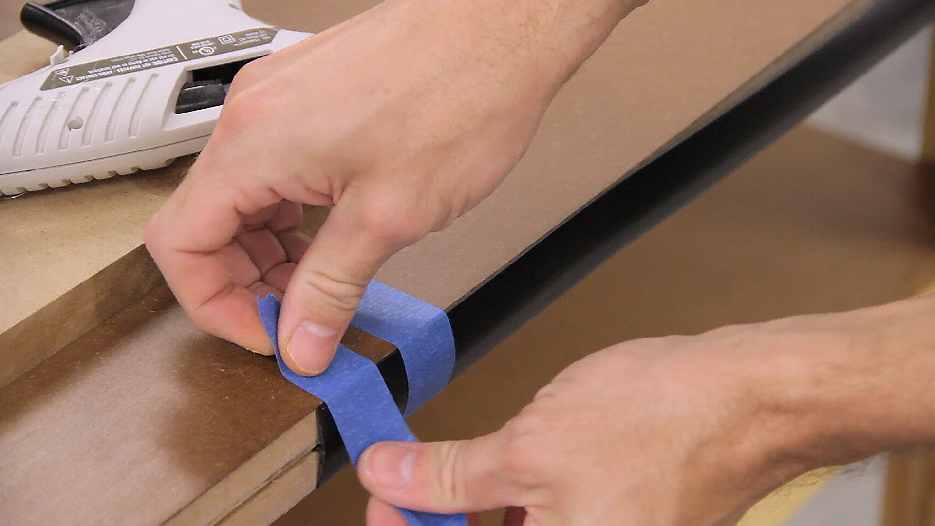 The last step to completing the top was to install the T-molding. After doing some tests, I decided to use a little Titebond wood glue to secure the molding as it seemed to work the best. I used several small strips of painters tape to hold it in place while the glue dried.