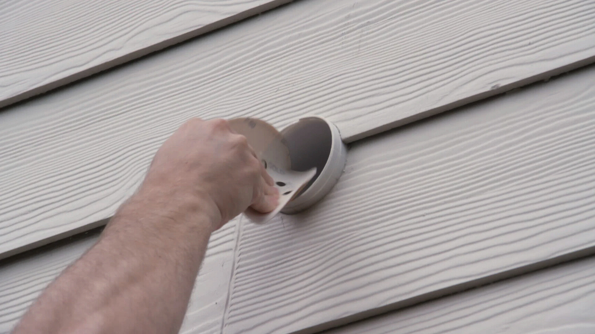 Since we have fiber cement siding I decided to finish cutting it from the outside to avoid any damage. This actually ended up working better than I expected using the hole saw and the end result turned out pretty nice.