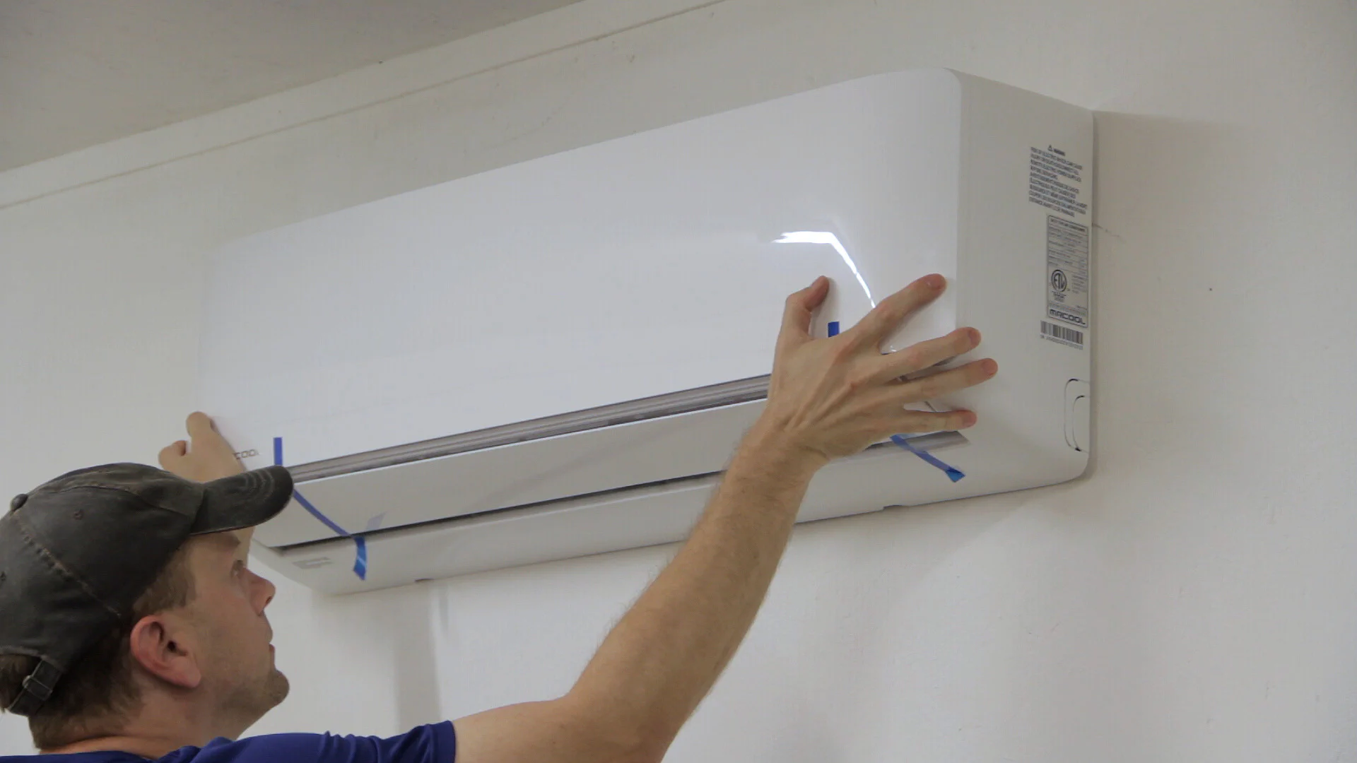 Next I finished attaching the mounting bracket with the remaining screws and then it was finally time to mount the indoor unit on the wall.
