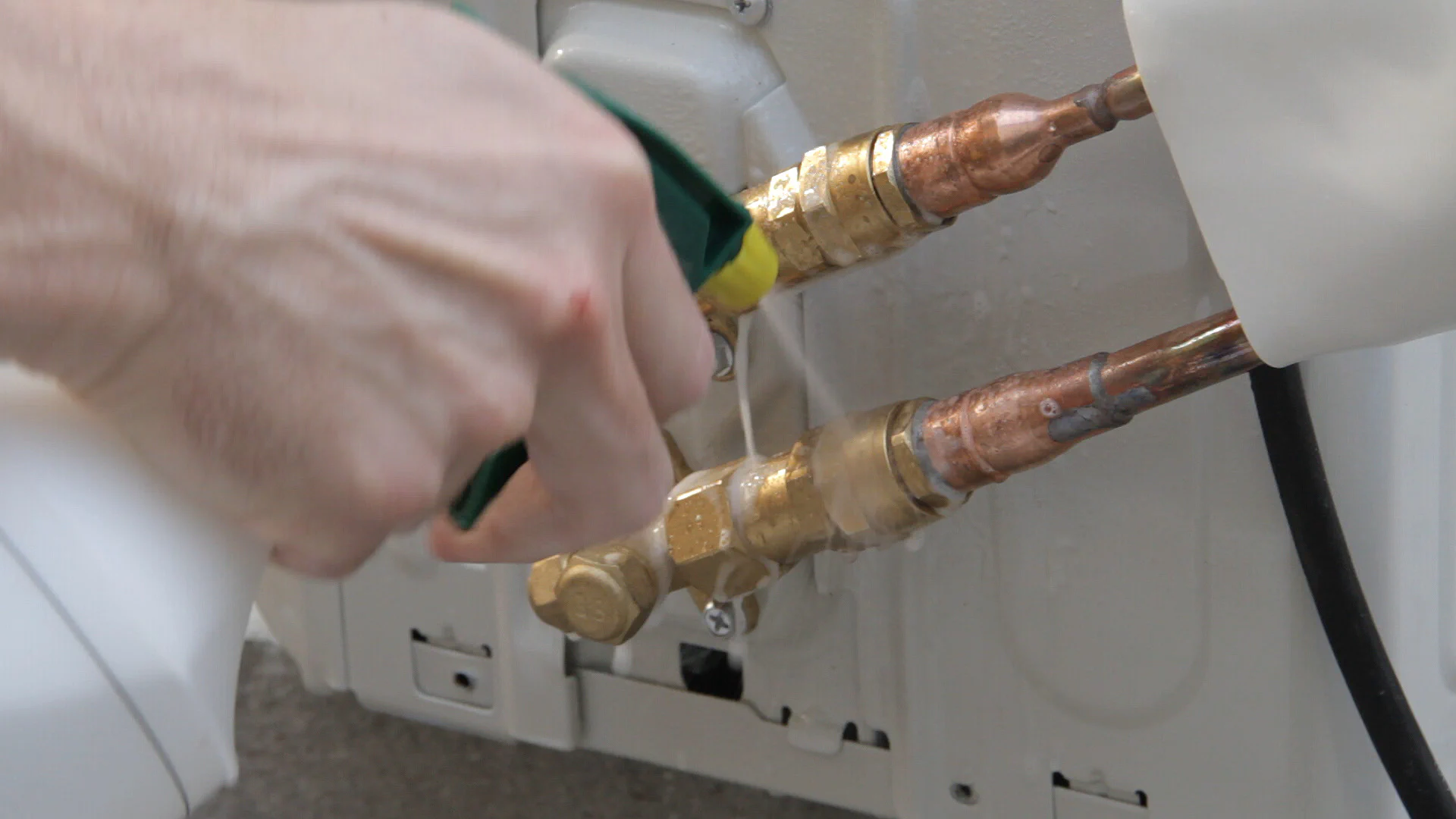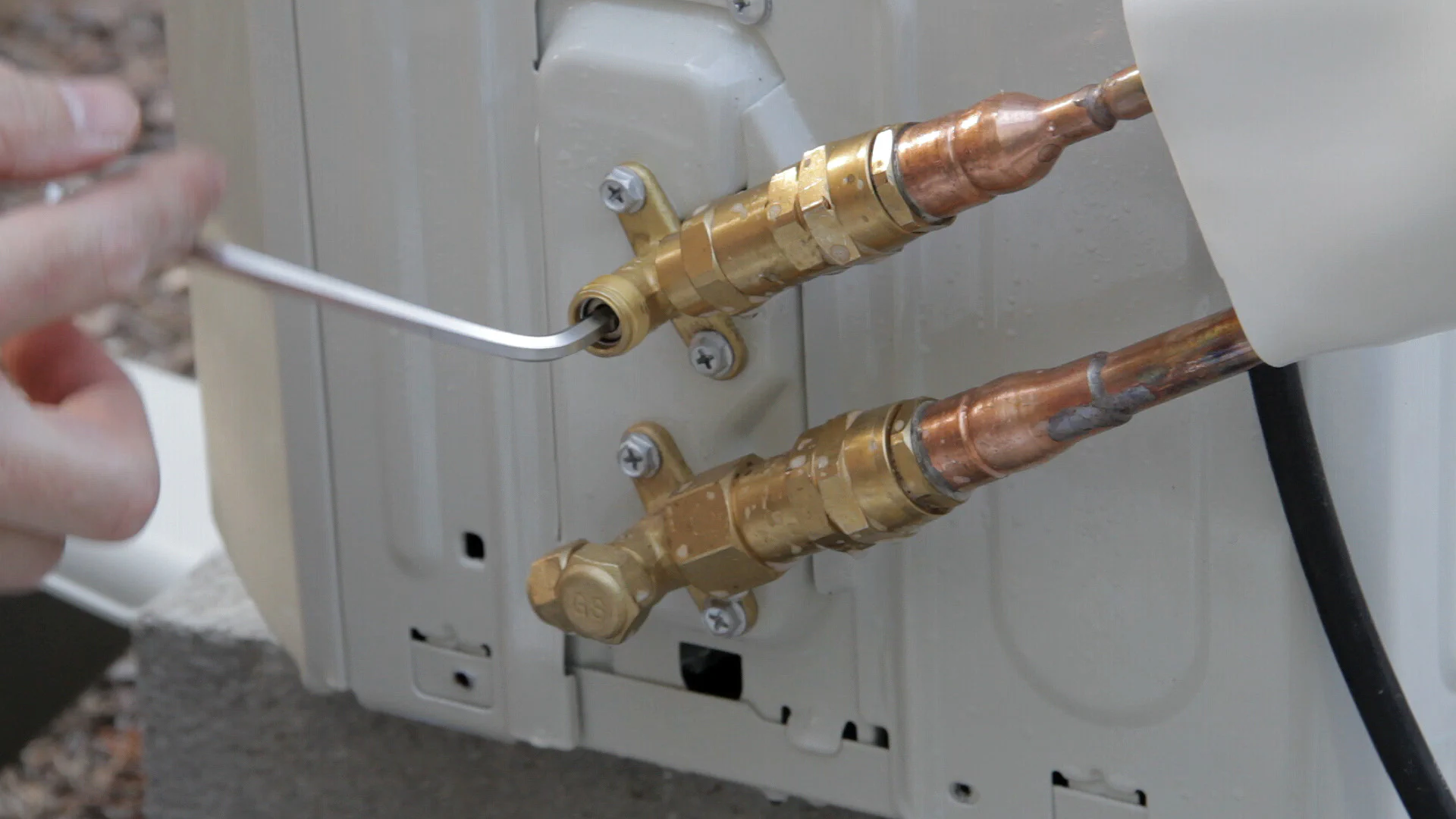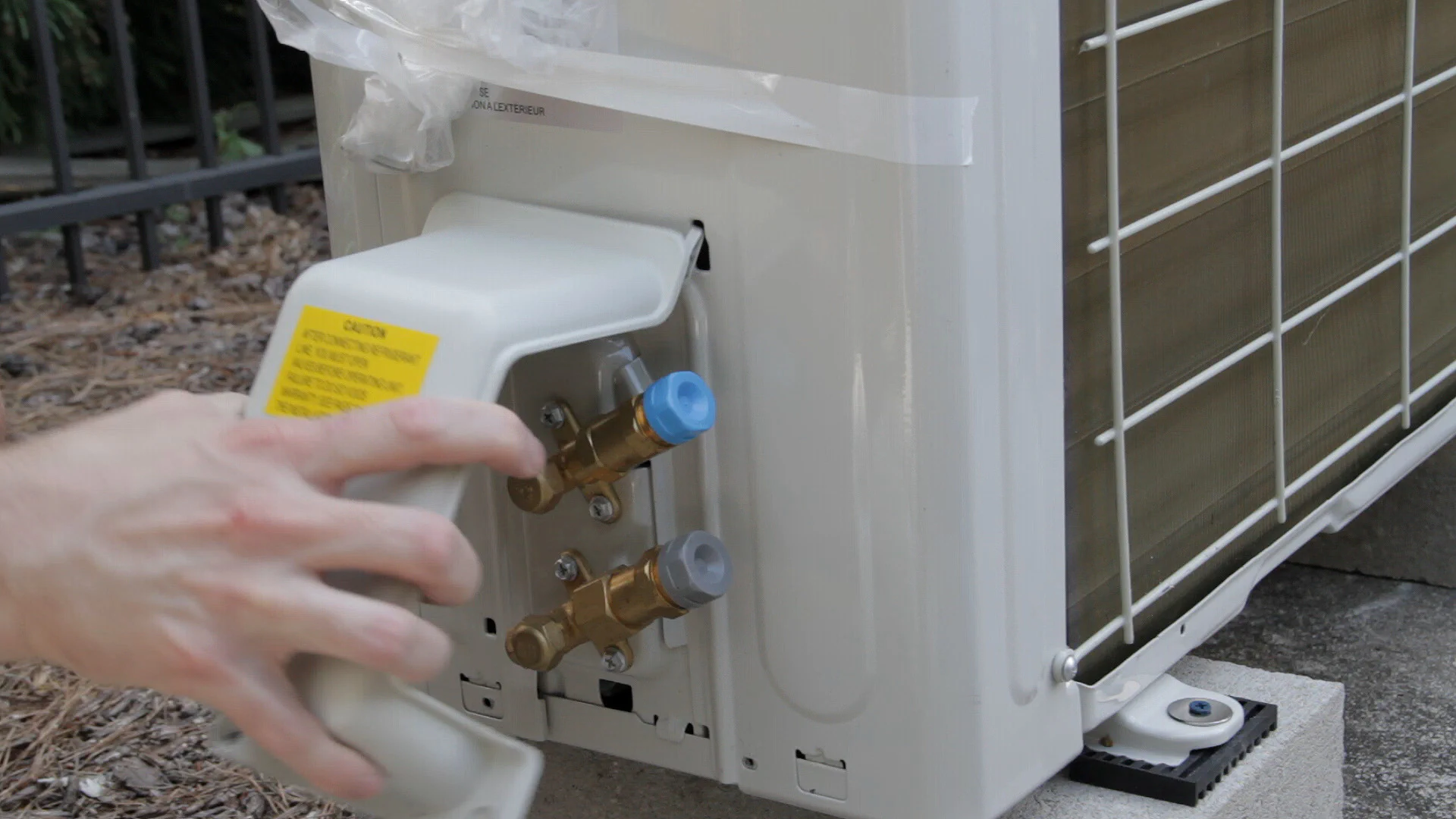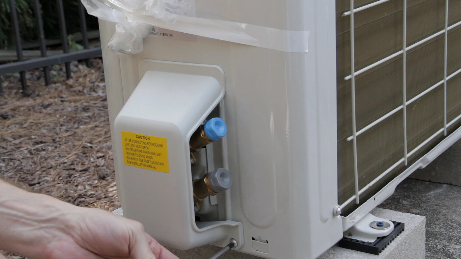 The reason for the “DIY” in the name of this unit is that the system is pre-charged and doesn’t require a HVAC technician to complete the installation. To finish up with the lines I sprayed them with soapy water to spot any leaks and then removed the metal caps on the connectors and opened the lines with the included Allan wrench. After a checking for leaks one more time, I put the caps back on and then reattached the plastic cover.