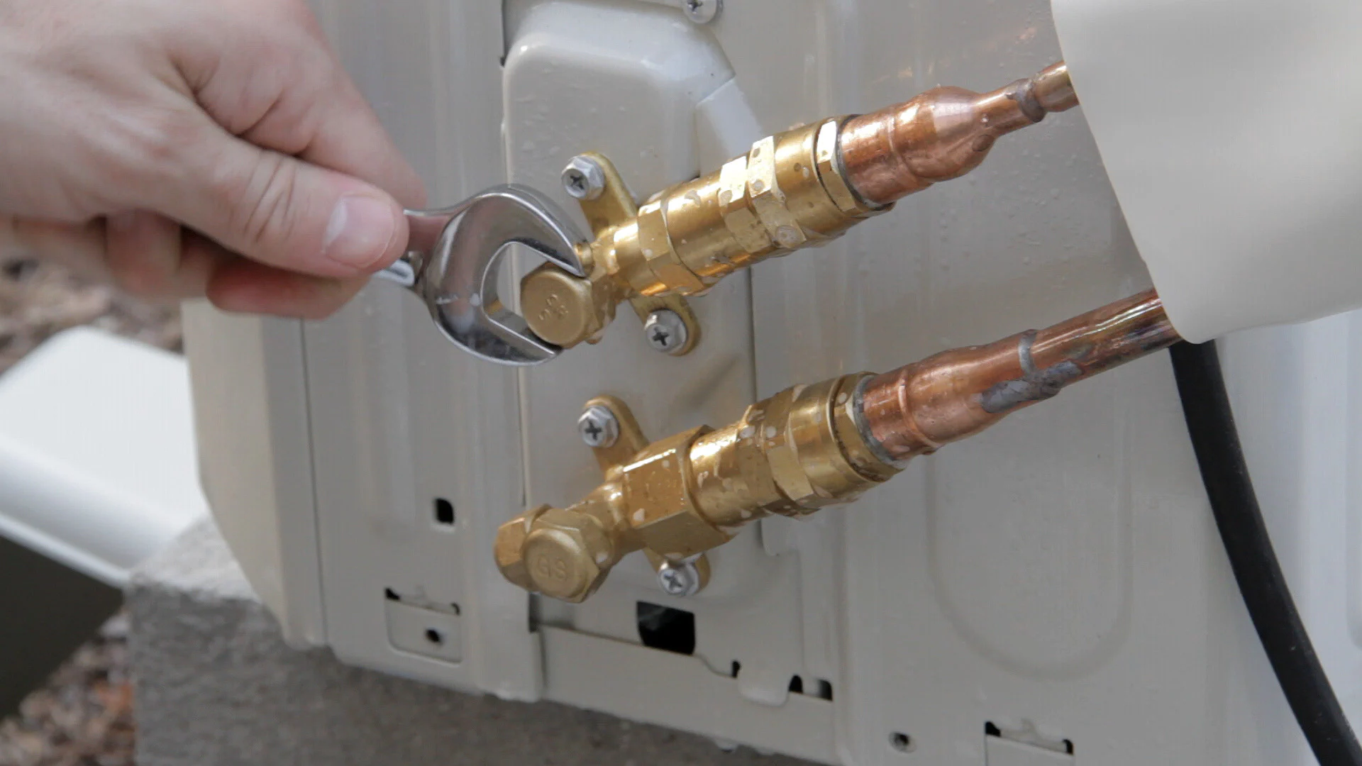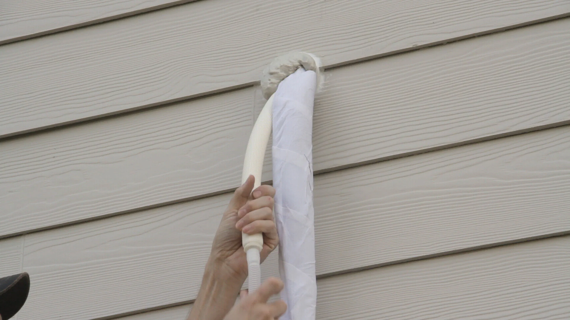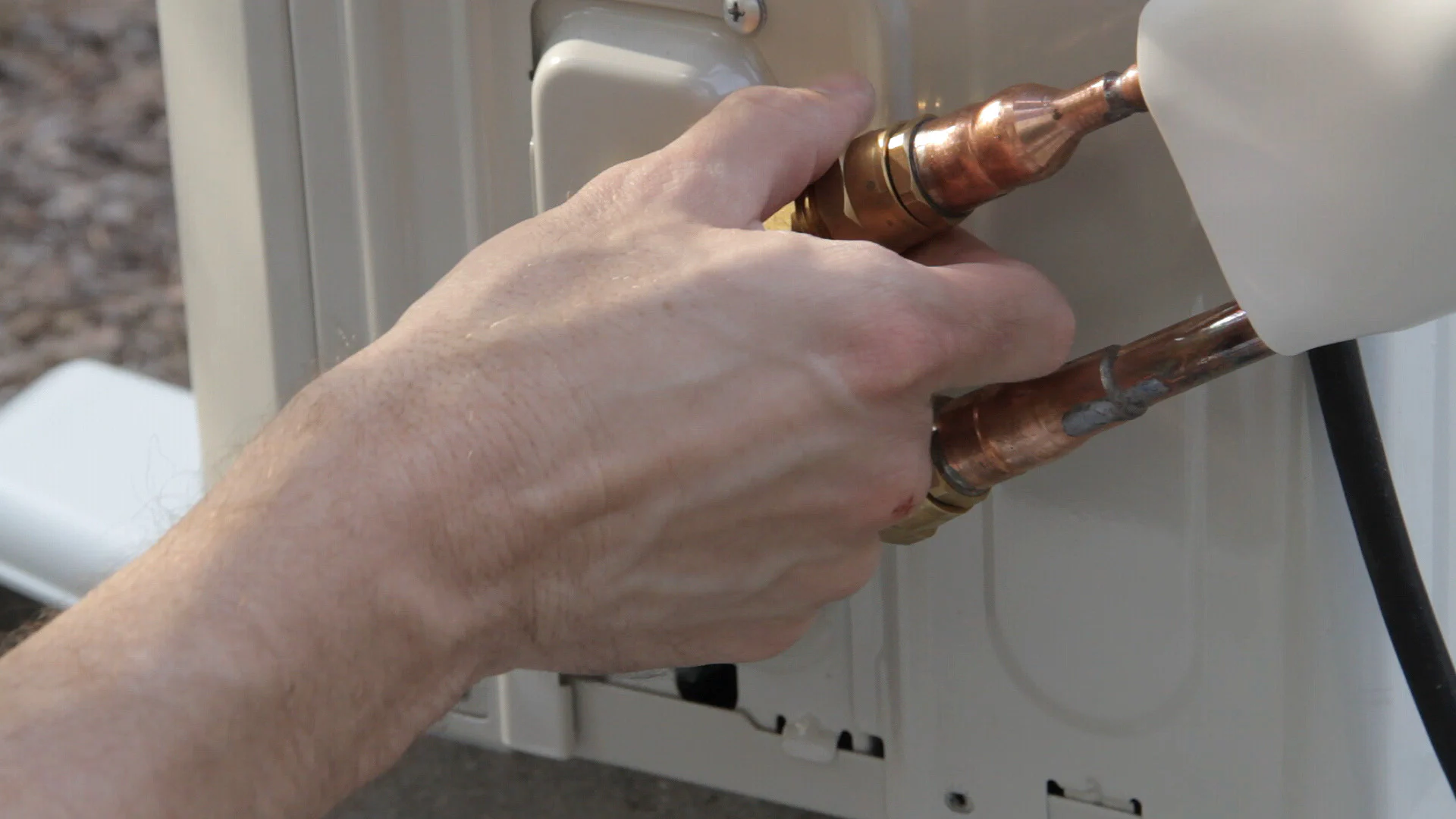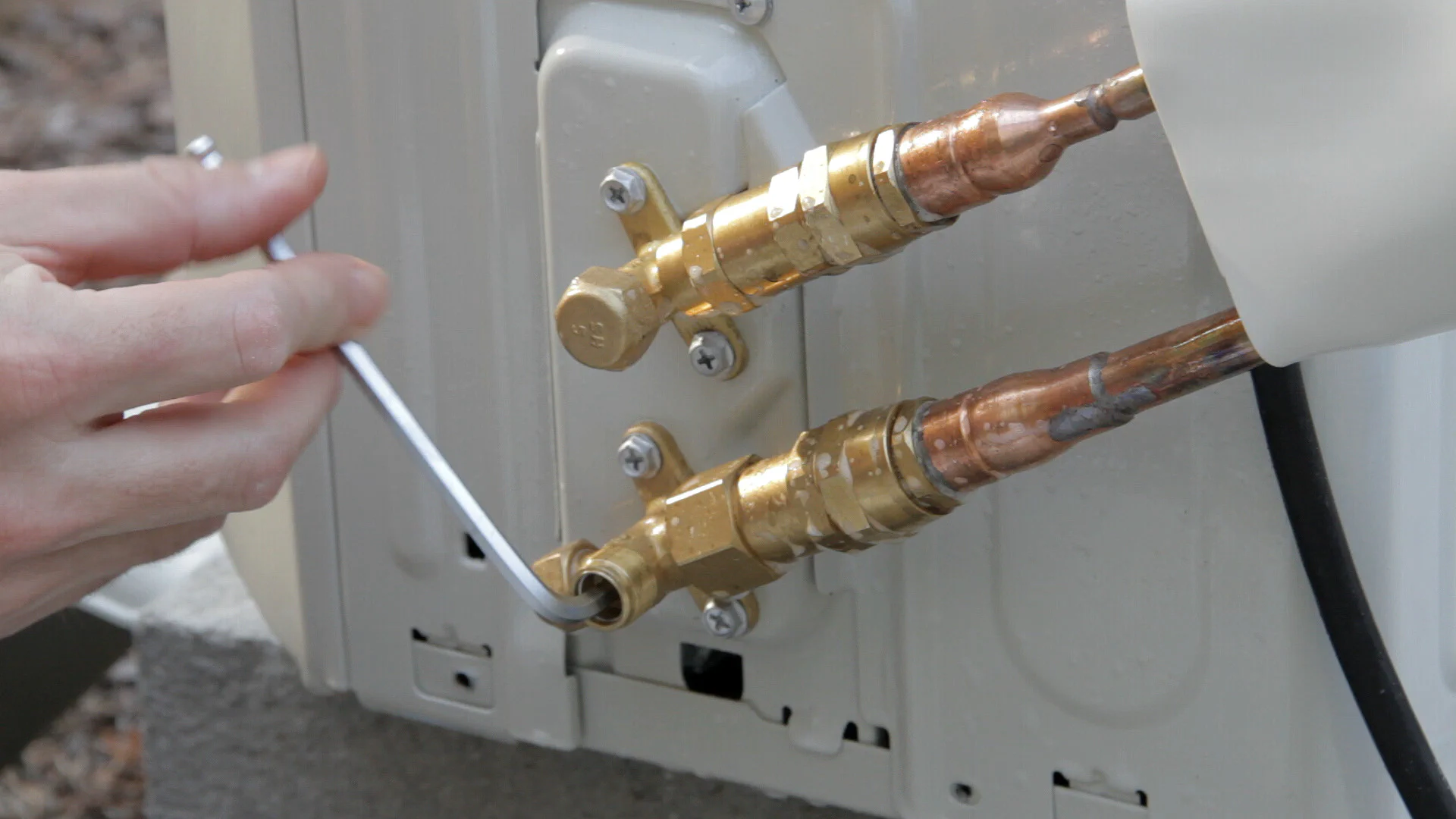 The reason for the “DIY” in the name of this unit is that the system is pre-charged and doesn’t require a HVAC technician to complete the installation. To finish up with the lines I sprayed them with soapy water to spot any leaks and then removed the metal caps on the connectors and opened the lines with the included Allan wrench. After a checking for leaks one more time, I put the caps back on and then reattached the plastic cover.