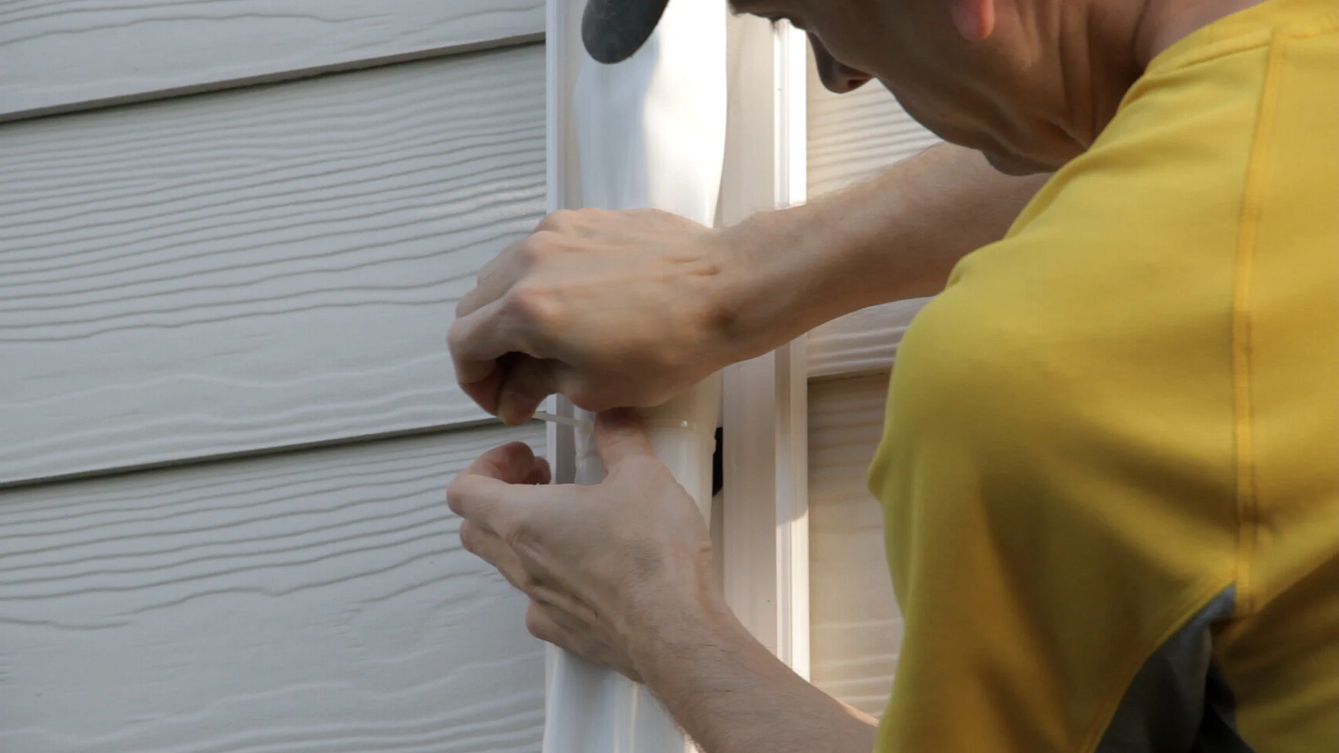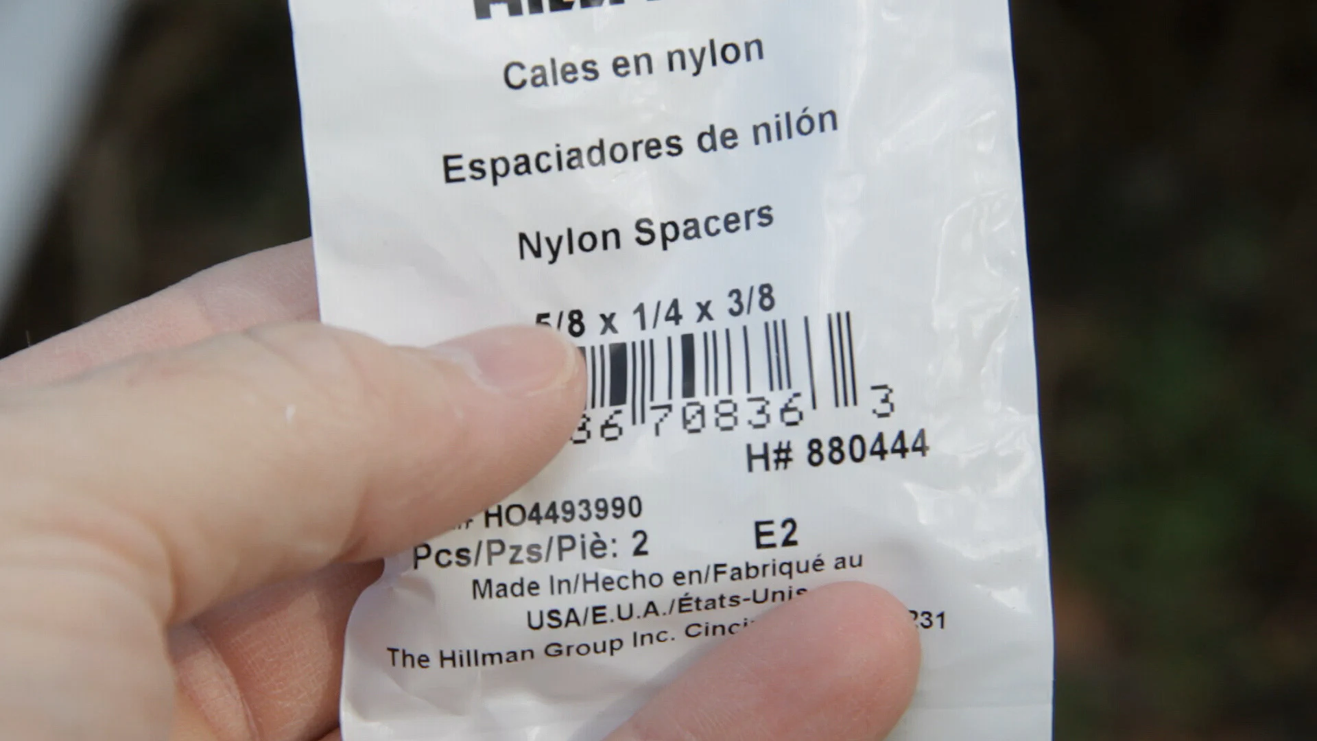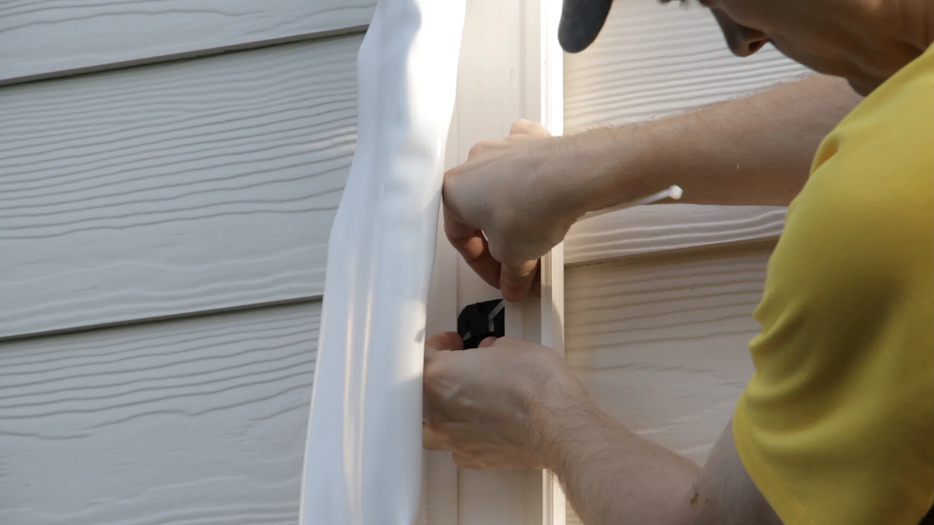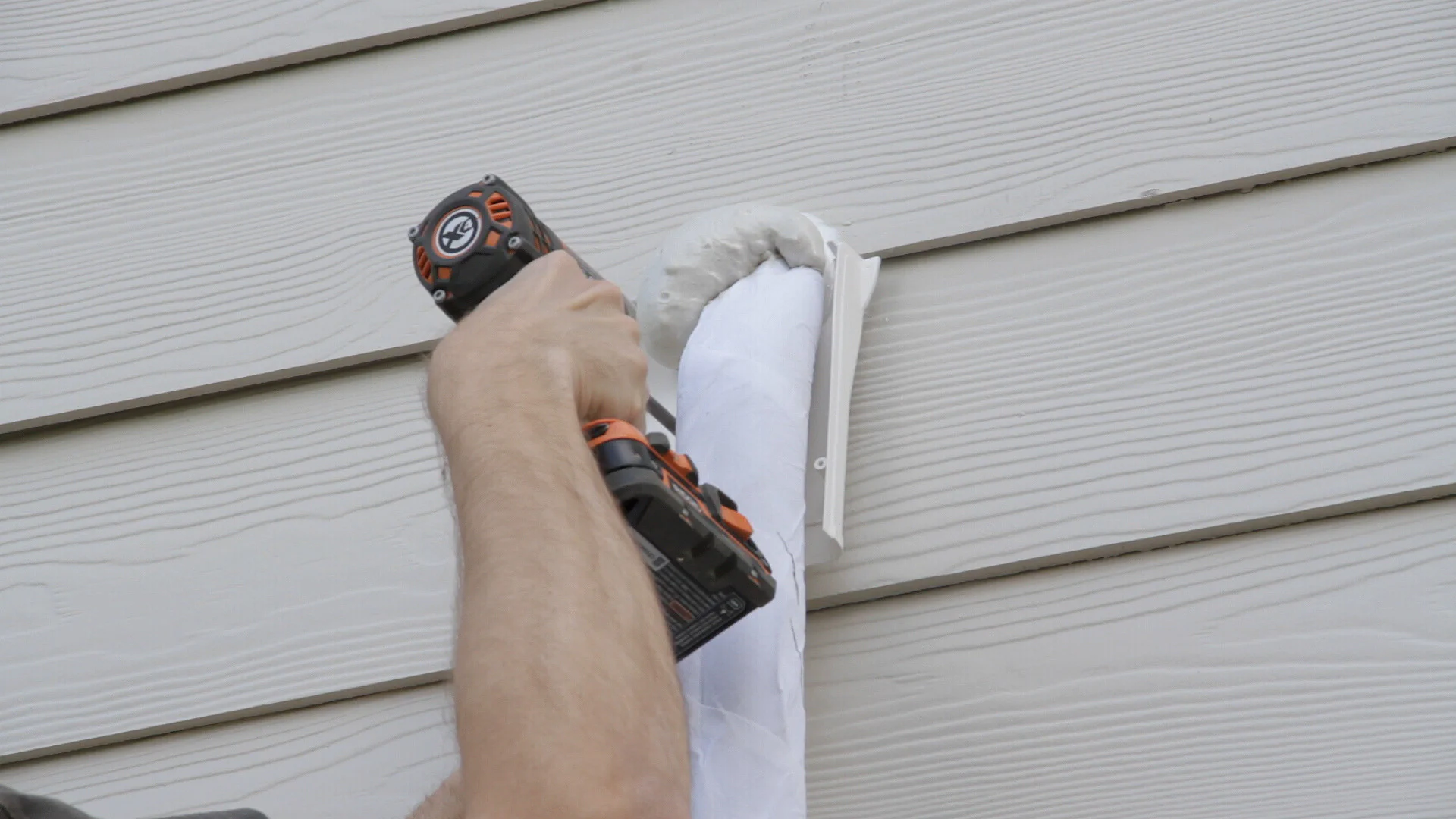 Because our siding slopes, I bought a few packs of small nylon spacers from the local hardware store to insert behind the cover where needed when screwing it into the siding.