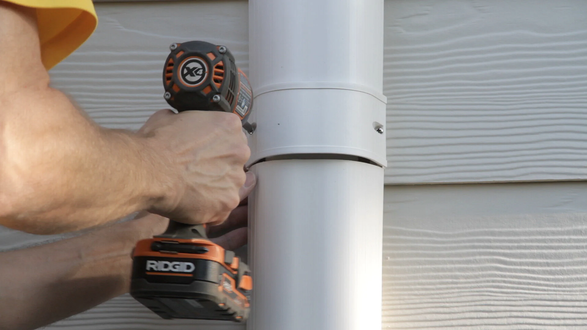 I also went ahead and also attached the drain elbow to help direct any water off the concrete pad.