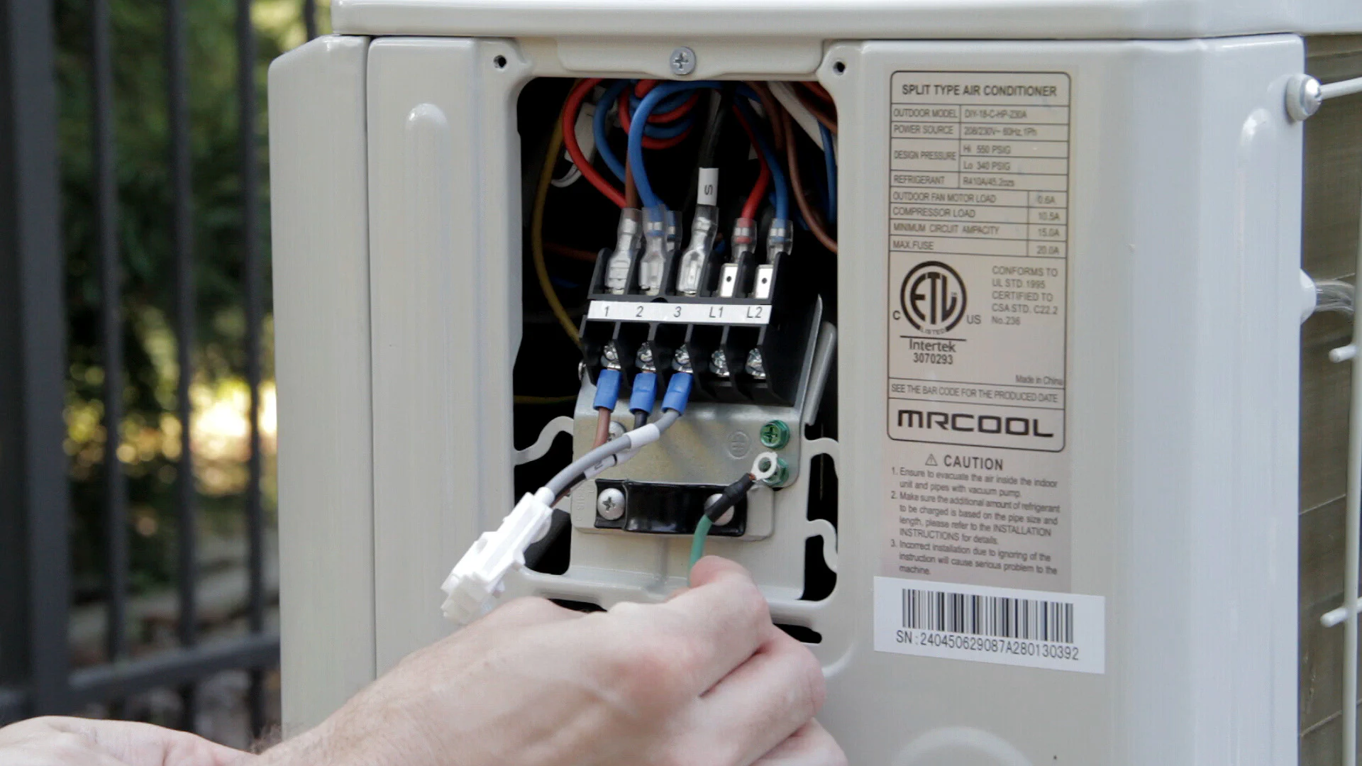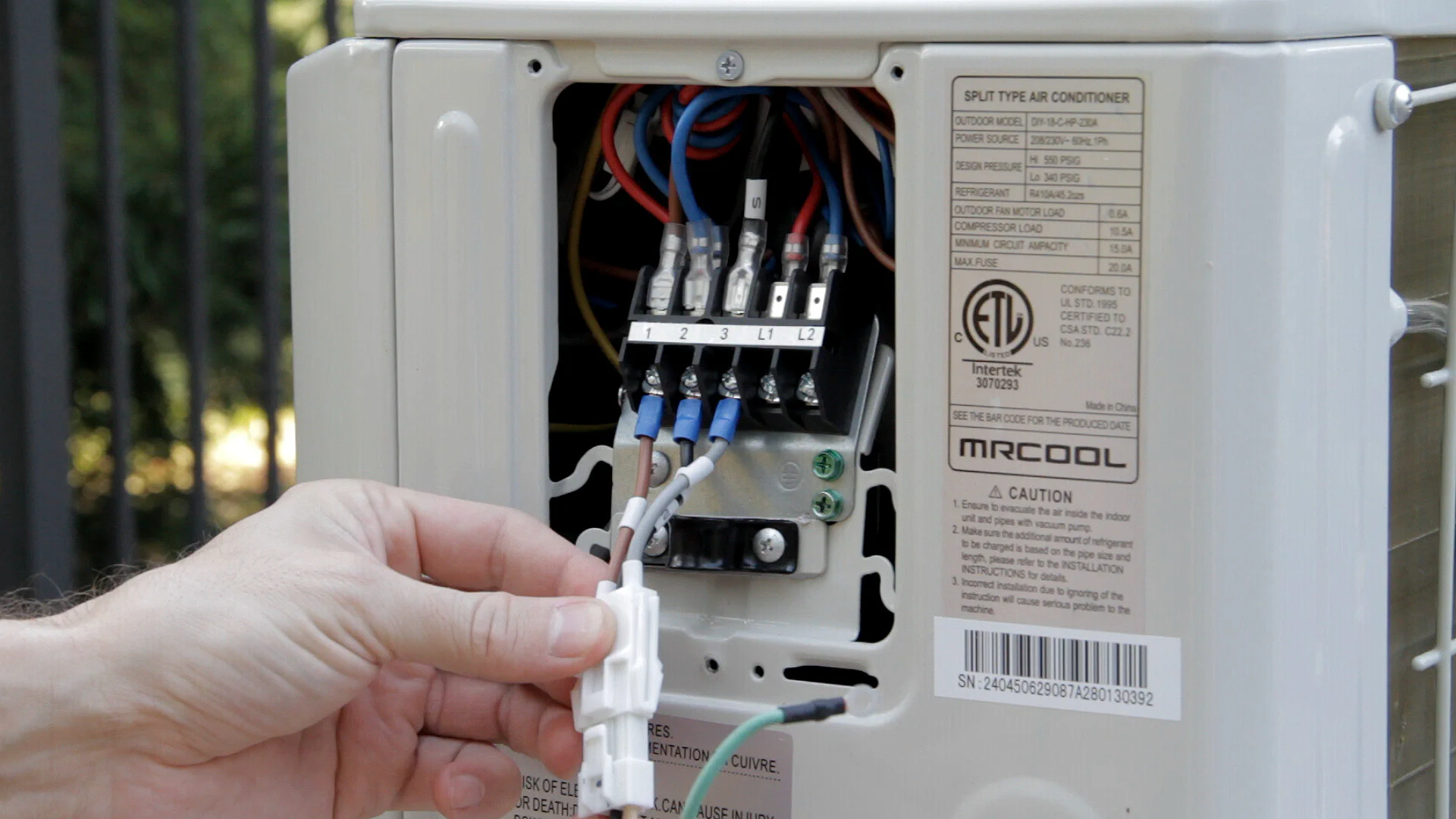 The not-so-DIY part of this mini-split is that an electrician is needed to run a new 120V or 240V circuit (depending on the unit) to the condenser. The wiring connection to the unit itself is pretty simple and the only other thing that needs to be done is to plug in the wiring harness from the indoor unit to the connector on the condenser and connect the ground wire.