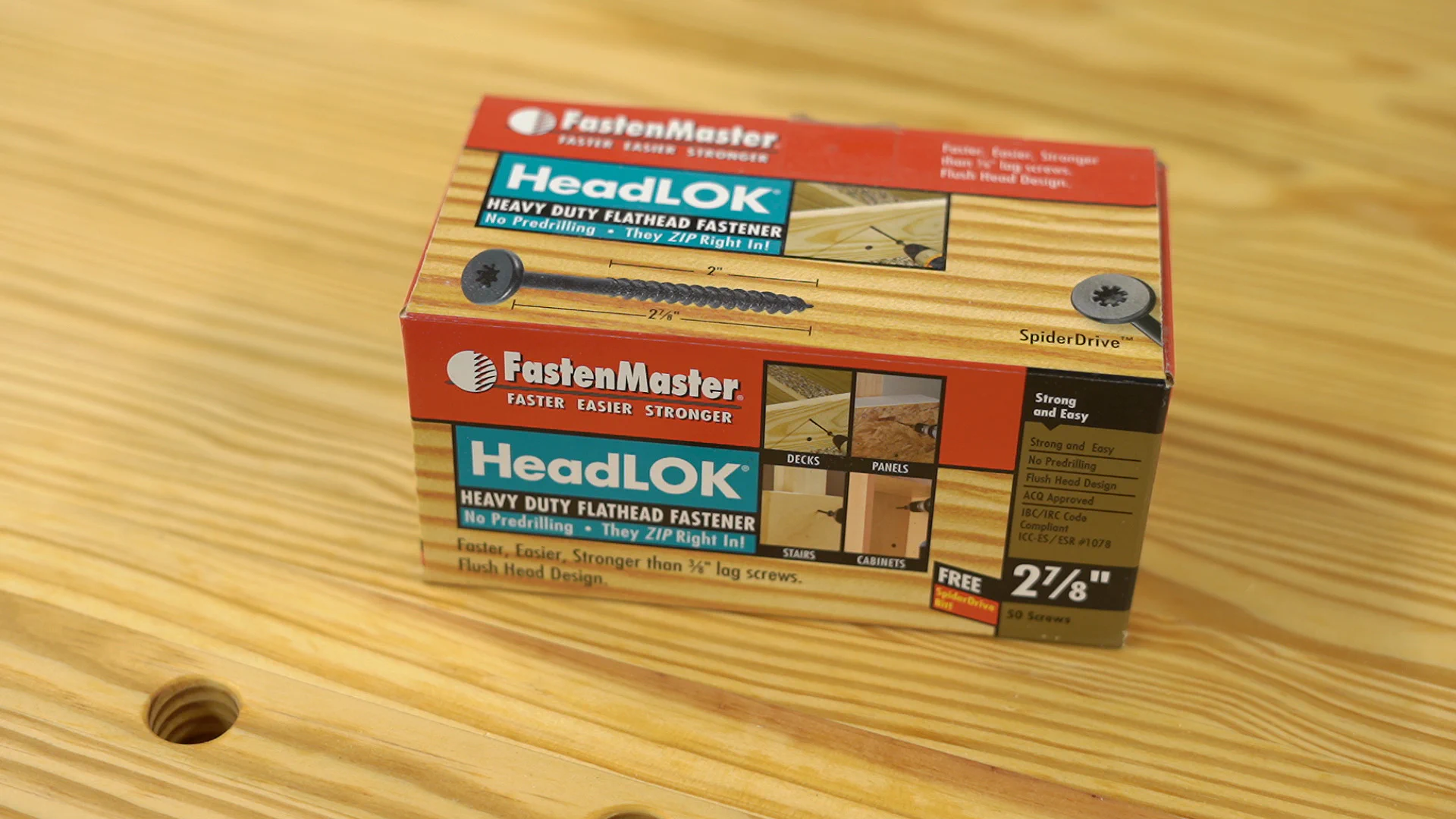 To mount the vise hardware to the bench, I used four flat-head (HeadLOK) lag screws in the outer mounting holes, and then came back later and used four more 2" #14 wood screws on the inner holes.