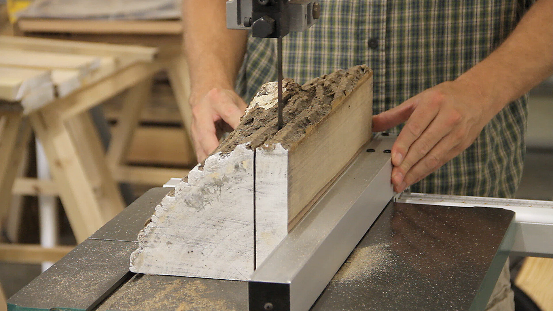 To prepare the boards, I started by ripping off the outer edge at the table saw.