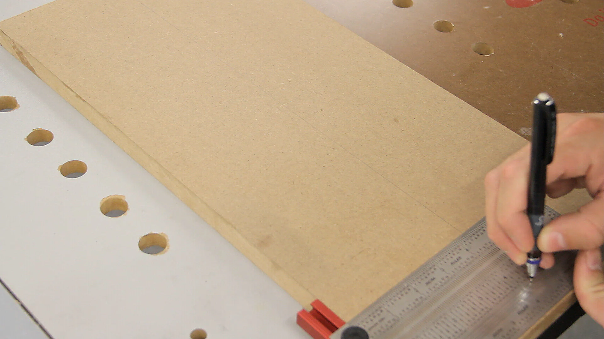 I then laid a piece of 18" miter bar on the line and marked the hole locations from the miter bar.